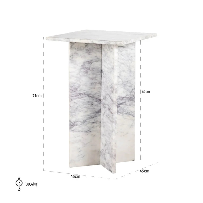 Dieser beeindruckende Beistelltisch aus hochwertigem Marmor und MDF bringt luxuriösen Charme in Ihr Zuhause. Mit einer Höhe von 70 cm, einer Breite und Tiefe von jeweils 45 cm bietet dieser Tisch eine großzügige Ablagefläche, die sowohl funktional als auch dekorativ ist. Das edle Marmor-Design, kombiniert mit der stabilen MDF-Struktur, verleiht dem Tisch eine elegante, zeitlose Ausstrahlung, die jedes Zimmer aufwertet.