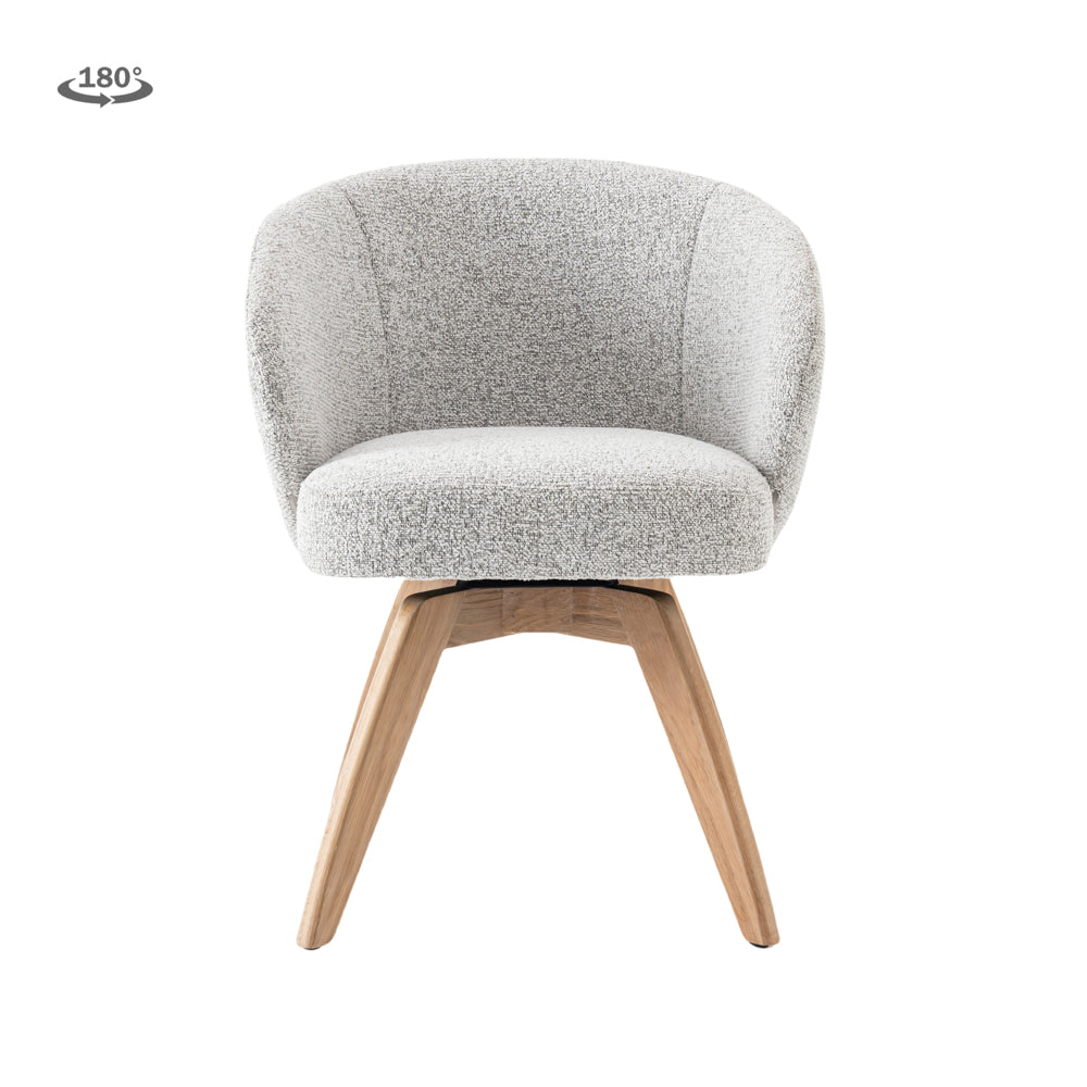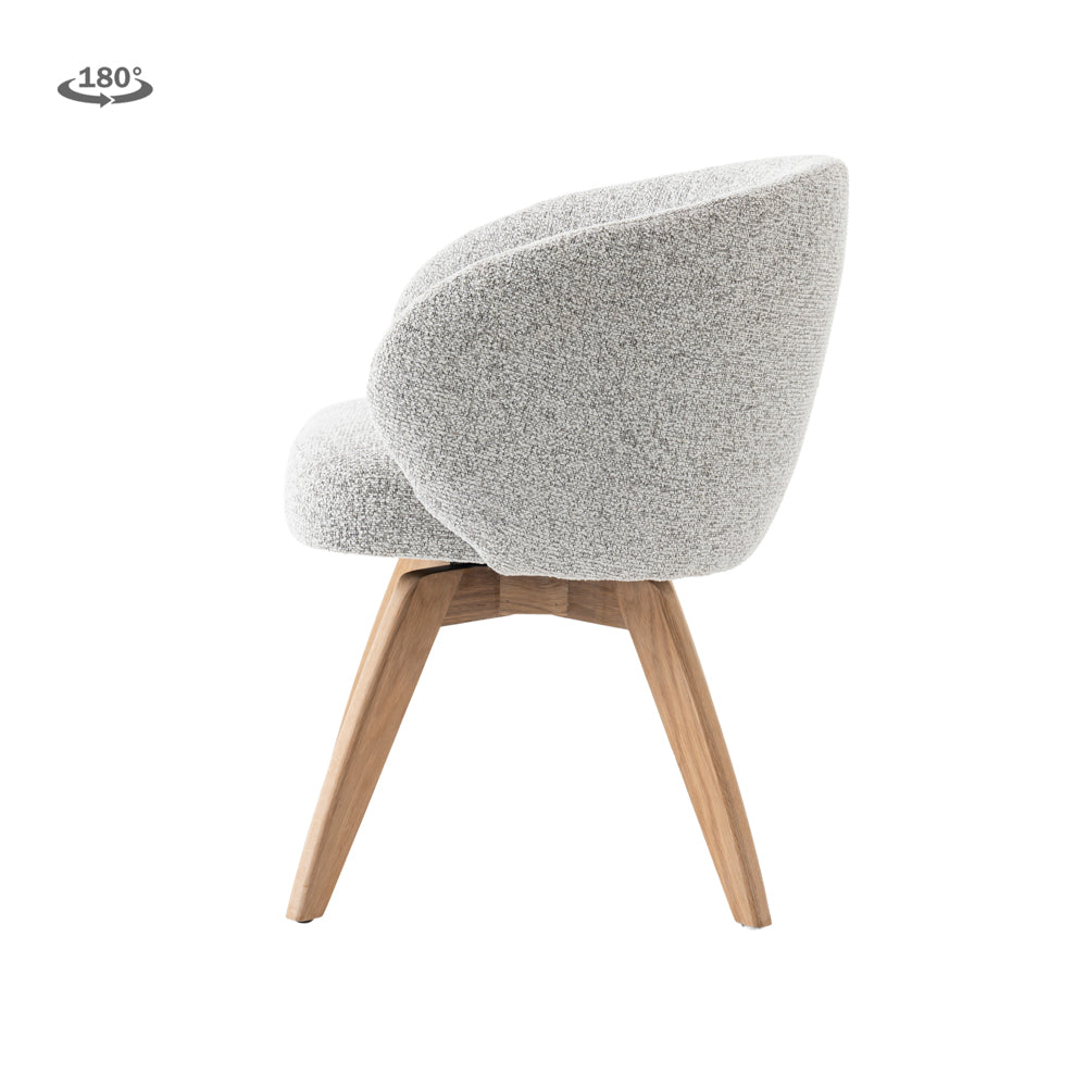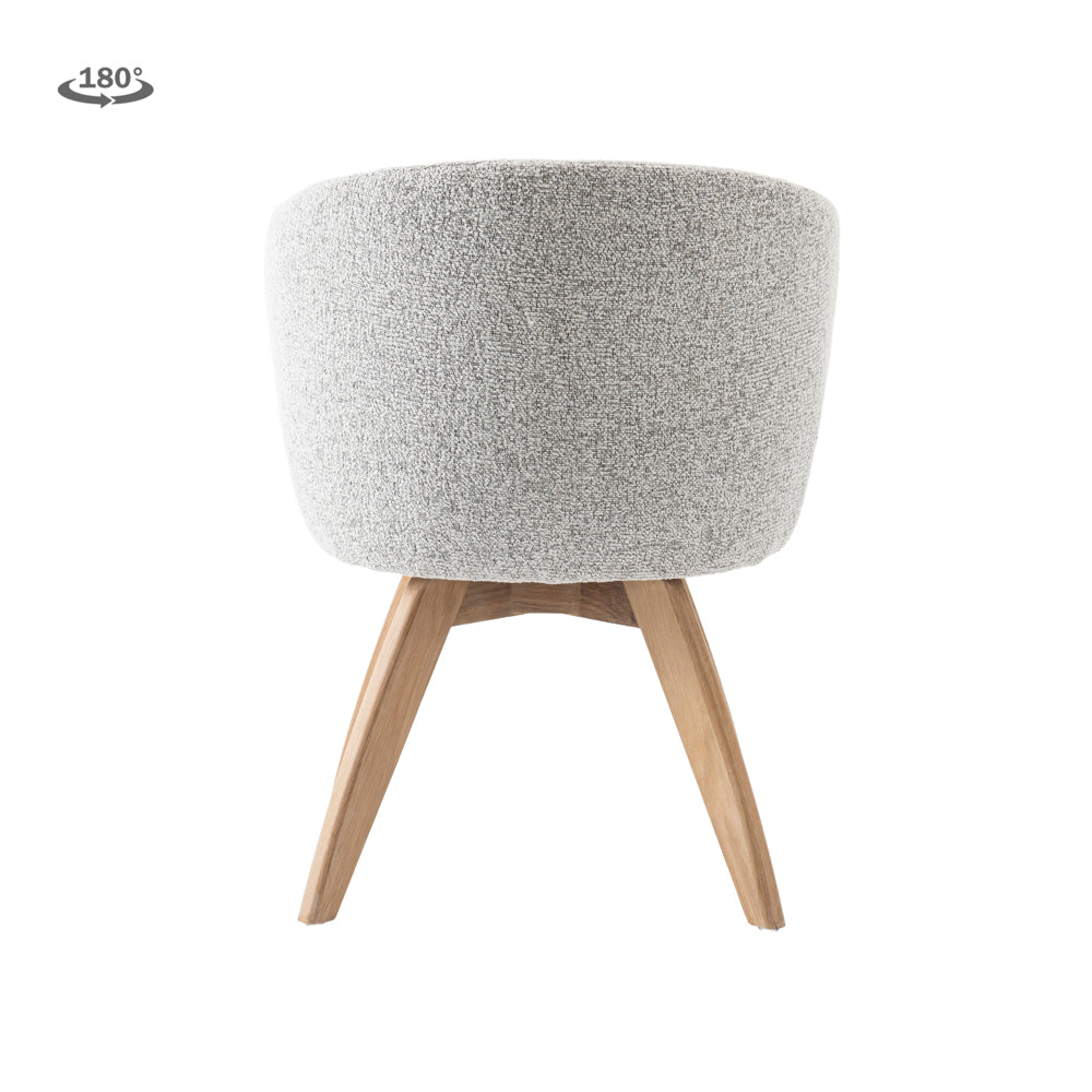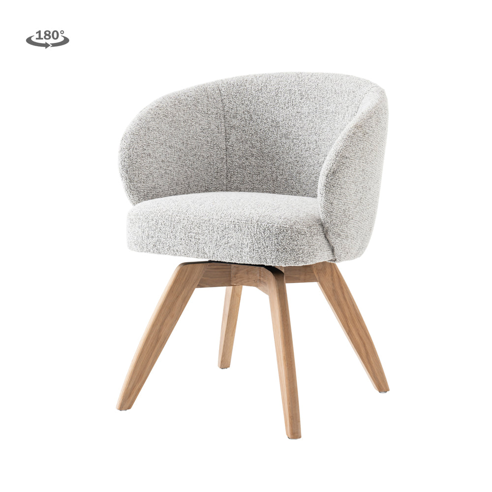Der hochwertige Stoffbezug in light-grey verleiht dem Stuhl eine zeitlose, elegante Optik und lässt sich vielseitig kombinieren.
