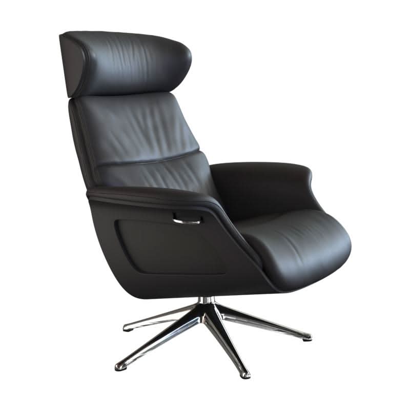 Die eleganten Aluminiumbeine sind in Schwarz, Aluminium poliert