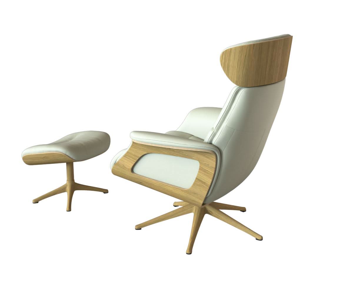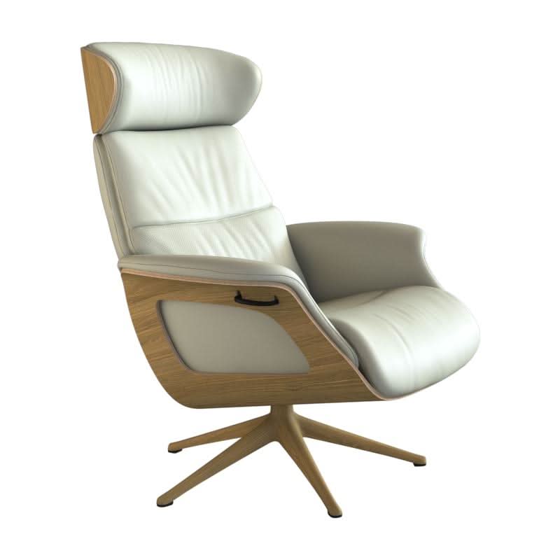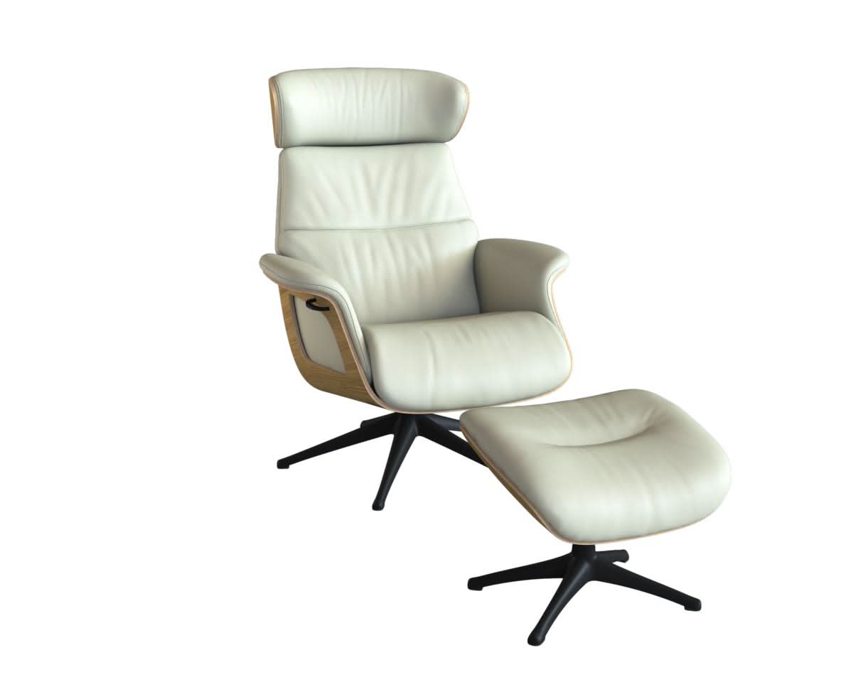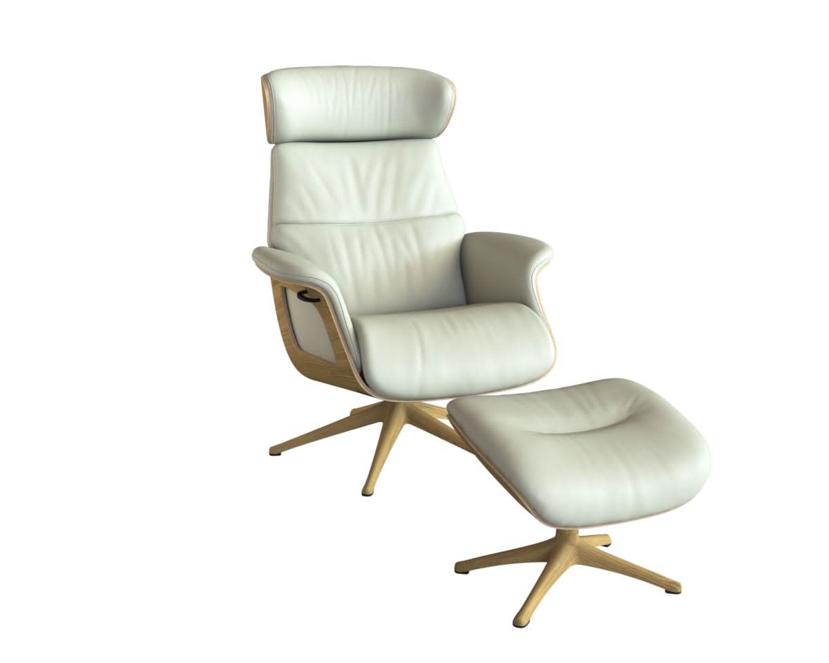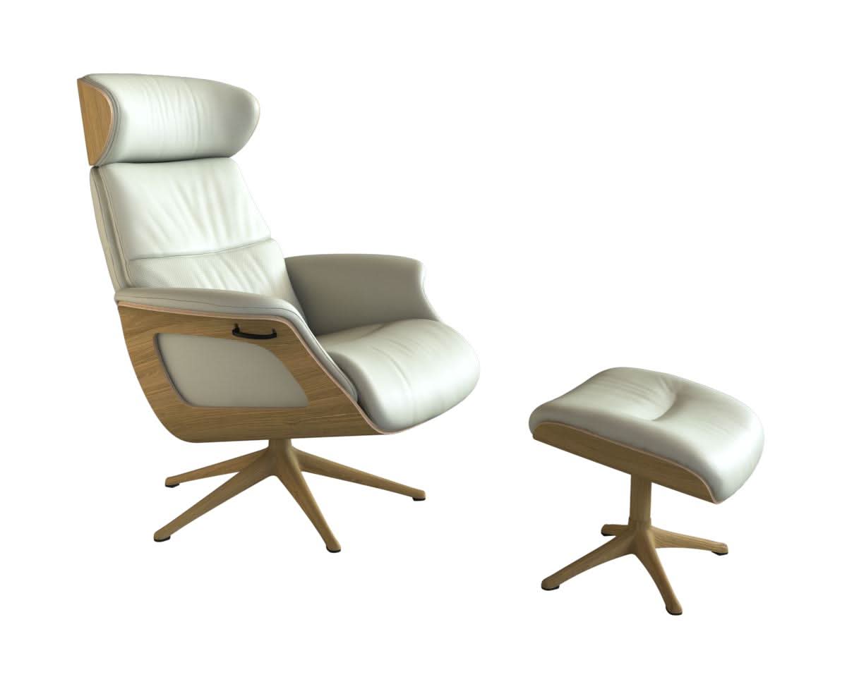 Clement Relaxsessel - Leder Savoy - Off White - separater Fußhocker - Eiche