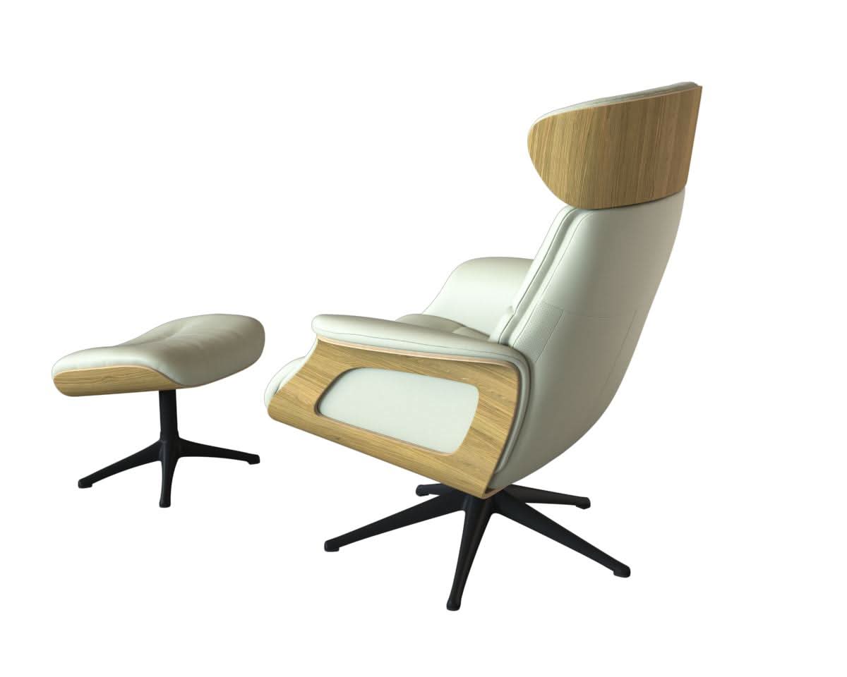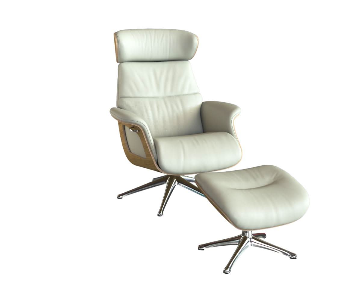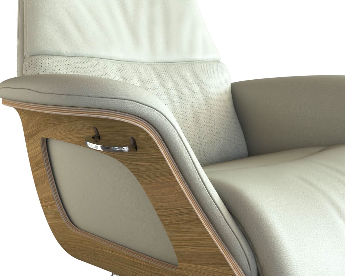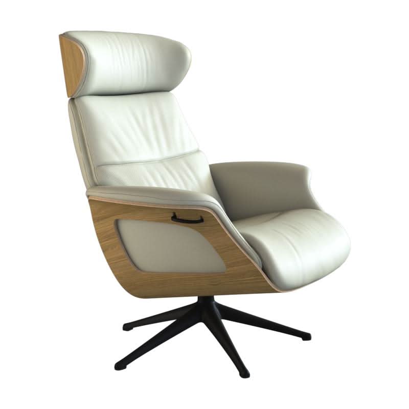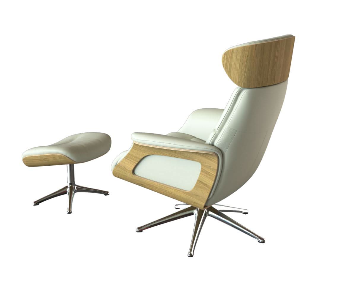 Clement Relaxsessel - Leder Savoy - Off White - separater Fußhocker - Eiche
