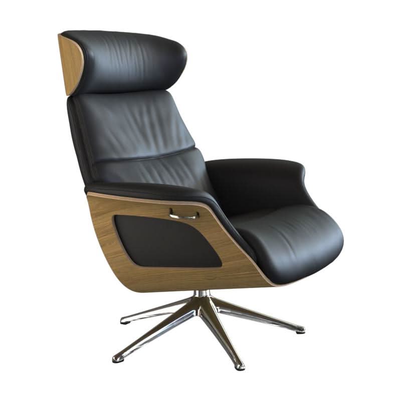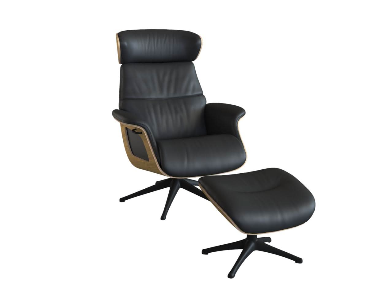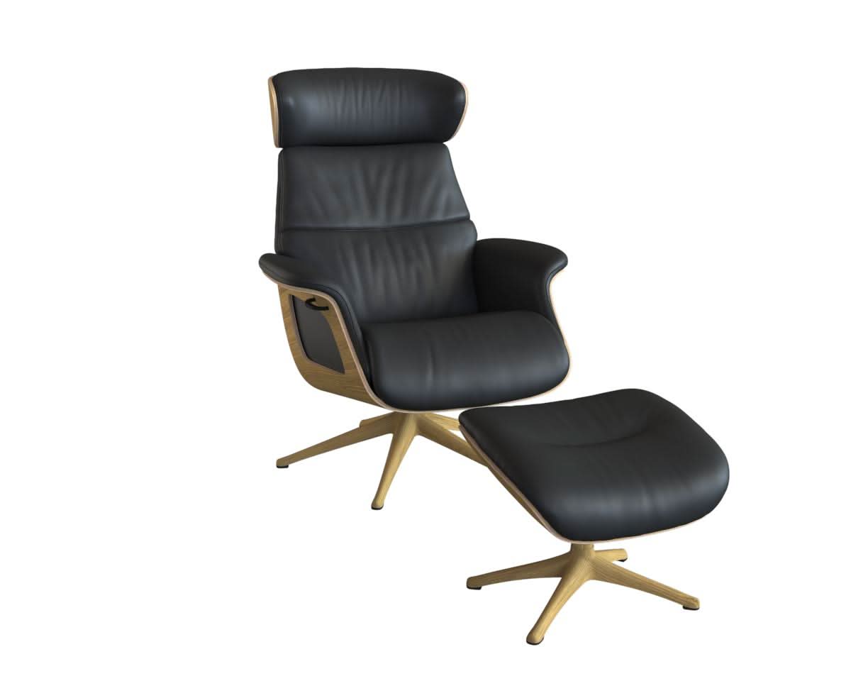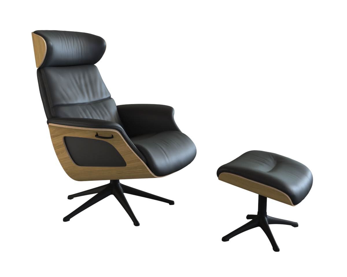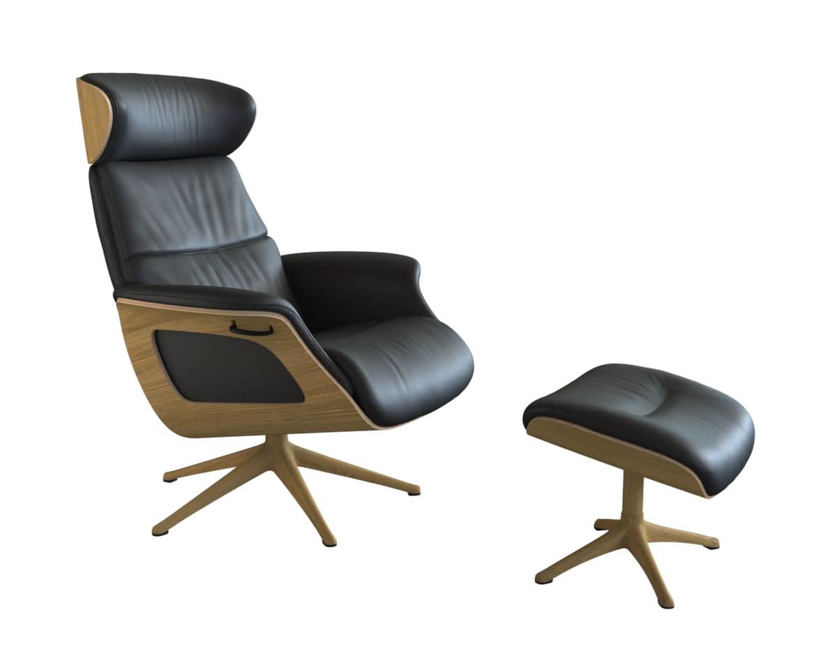 Clement Relaxsessel - Leder Savoy - Platin - separater Fußhocker - Eiche