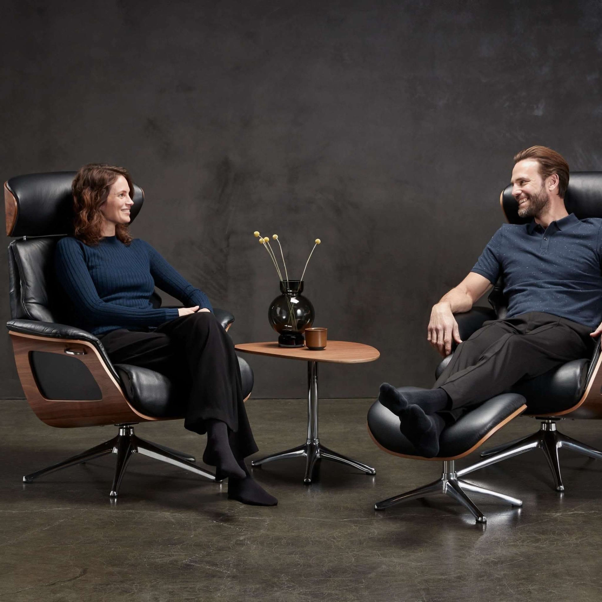 Die eleganten Aluminiumbeine sind in Schwarz, Aluminium poliert