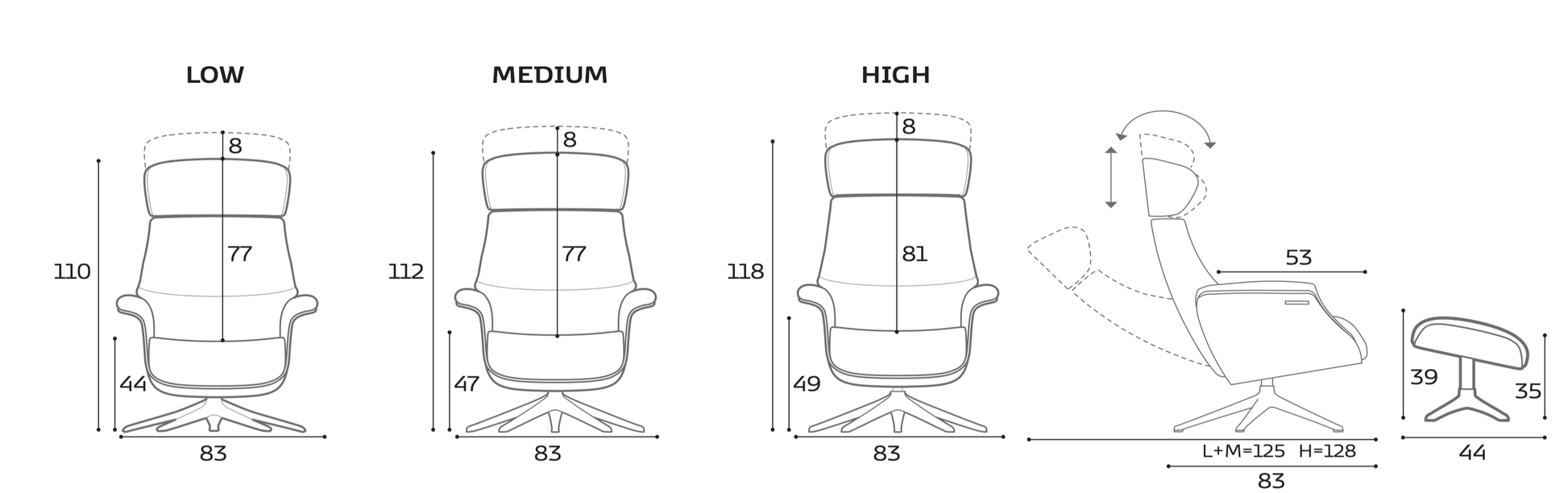 Breite: 83 cm / Tiefe: 125 cm / Höhe: 118 cm