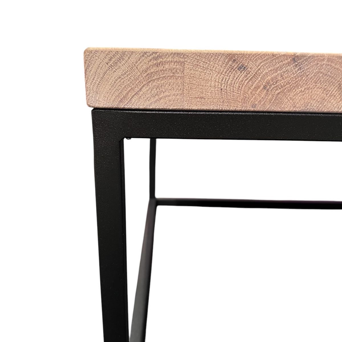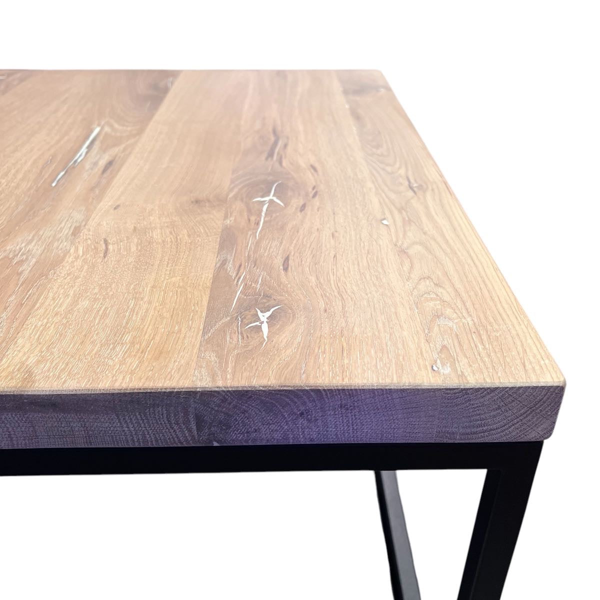 - Die Tischplatte ist aus massivem Eichenholz gefertigt und mit einem Lack bzw. Öl versiegelt.