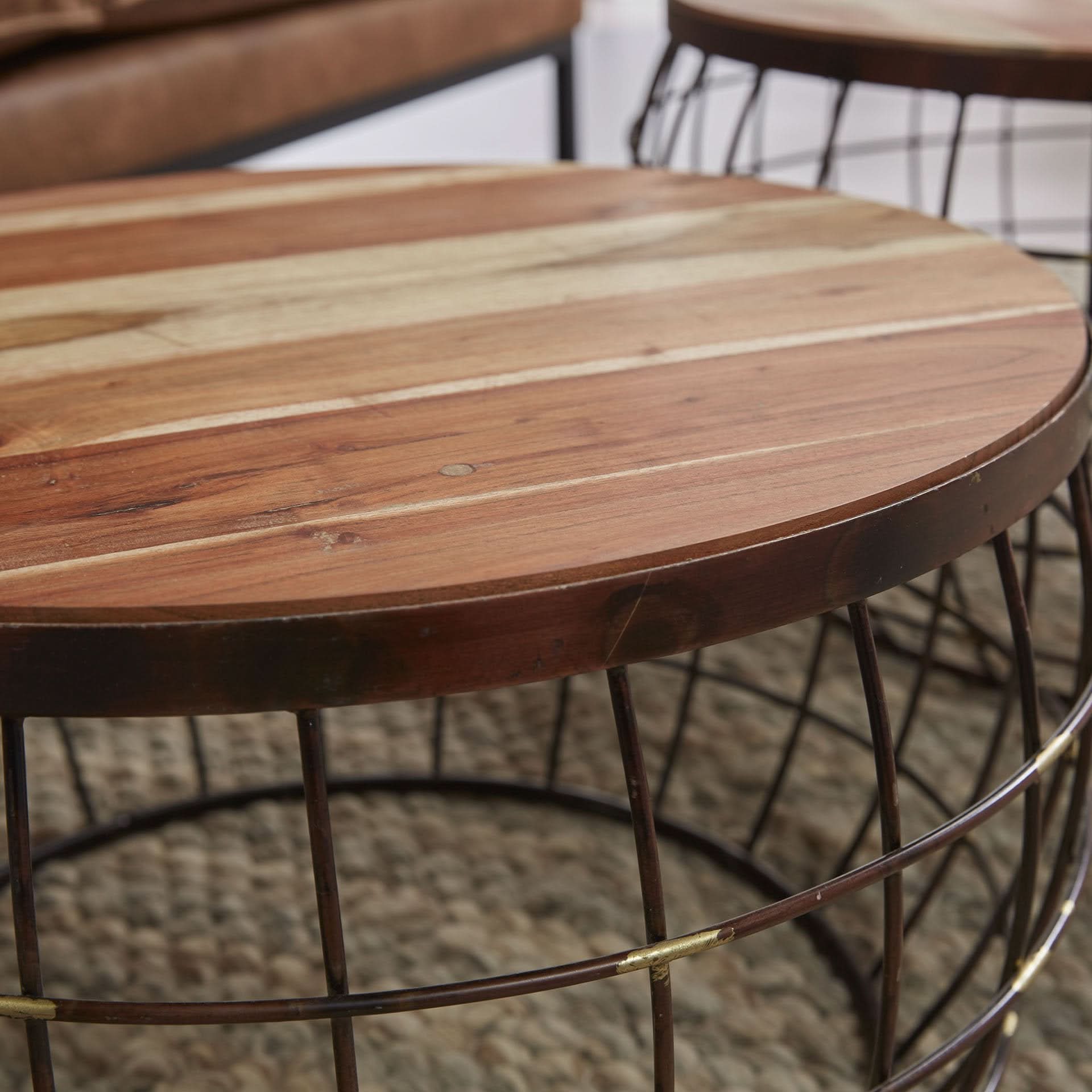 Couchtisch Satz/2 Holz Tischplatte/Draht / Kupfer antik finish
