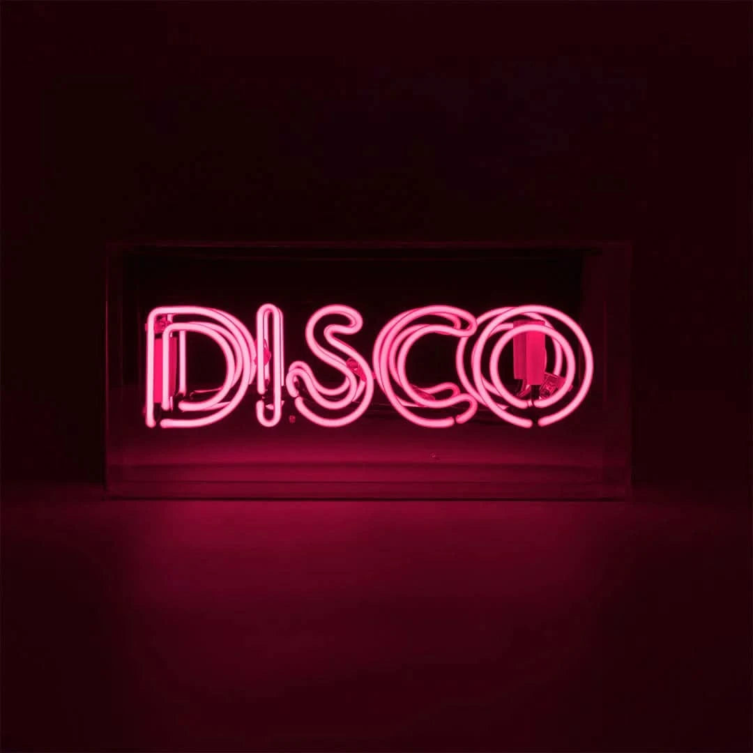 Das Glasneonschild "Disco" bringt einen coolen, authentischen Glanz in Ihr Zuhause. Verspielter Retro-Stil. Ein unverzichtbares Beleuchtungselement, das sich auch hervorragend als Geschenk eignet!