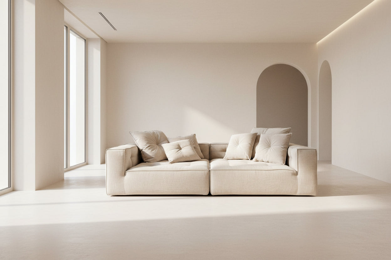 Ryan ist das Sofa für alle, die ihre Serienabende am liebsten gar nicht beenden möchten. Der elegante Samtbezug in beige macht Ryan sofort zum Blickfang, während die legere Polsterung dafür sorgt, dass man am liebsten gar nicht mehr aufstehen möchte. Samt fühlt sich nicht nur wunderbar weich an, sondern verleiht dem Sofa auch diese luxuriöse, ruhige Ausstrahlung, die jedes Wohnzimmer ein bisschen besonderer macht.