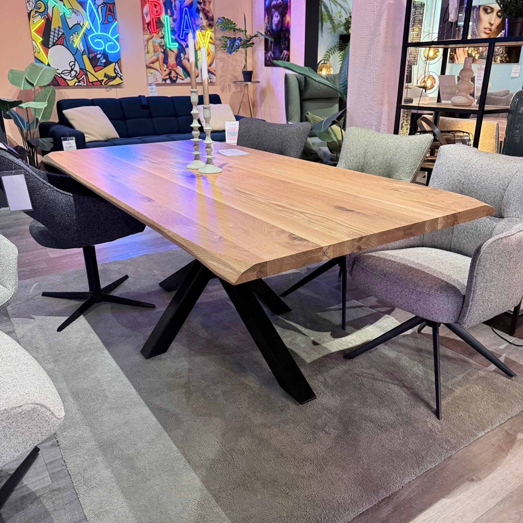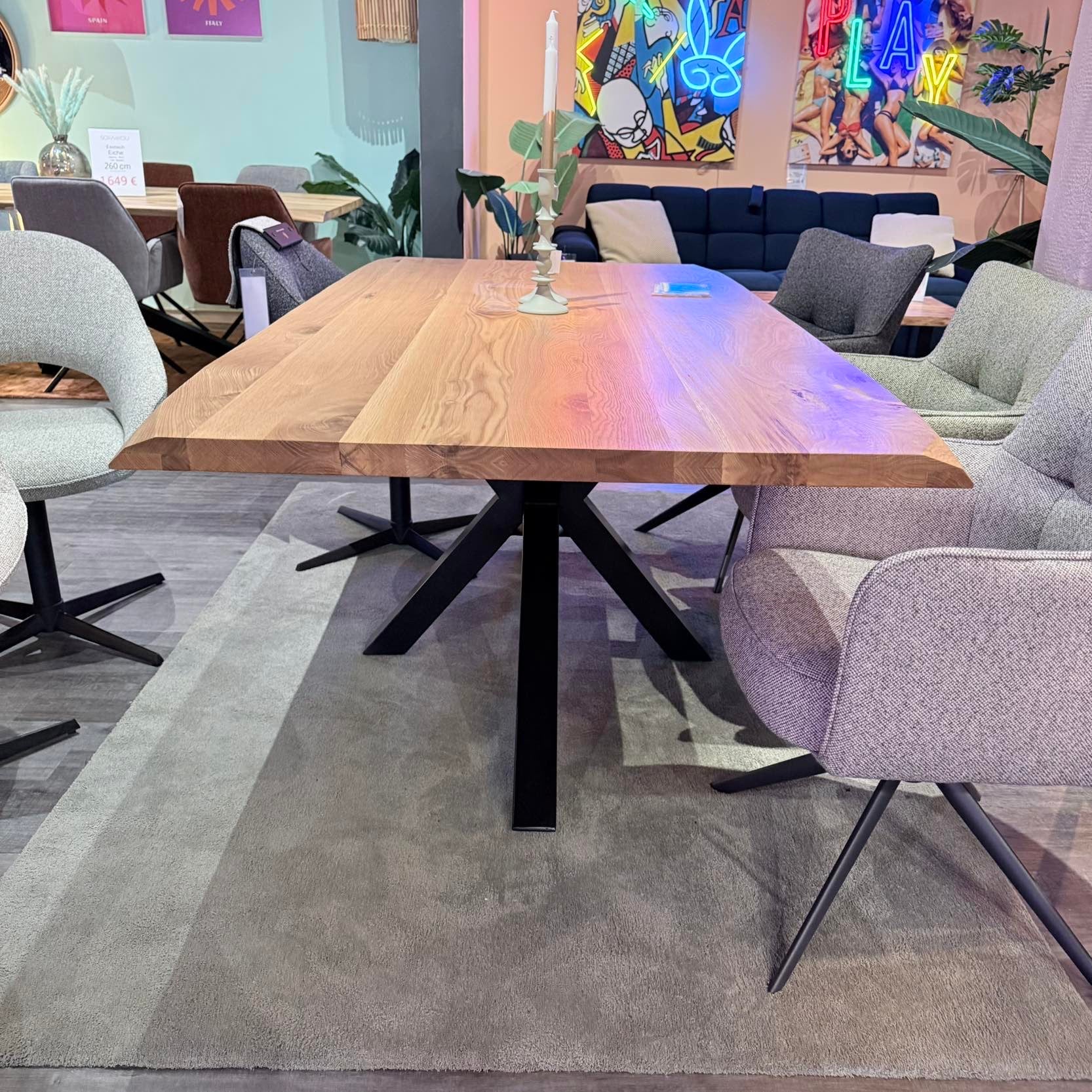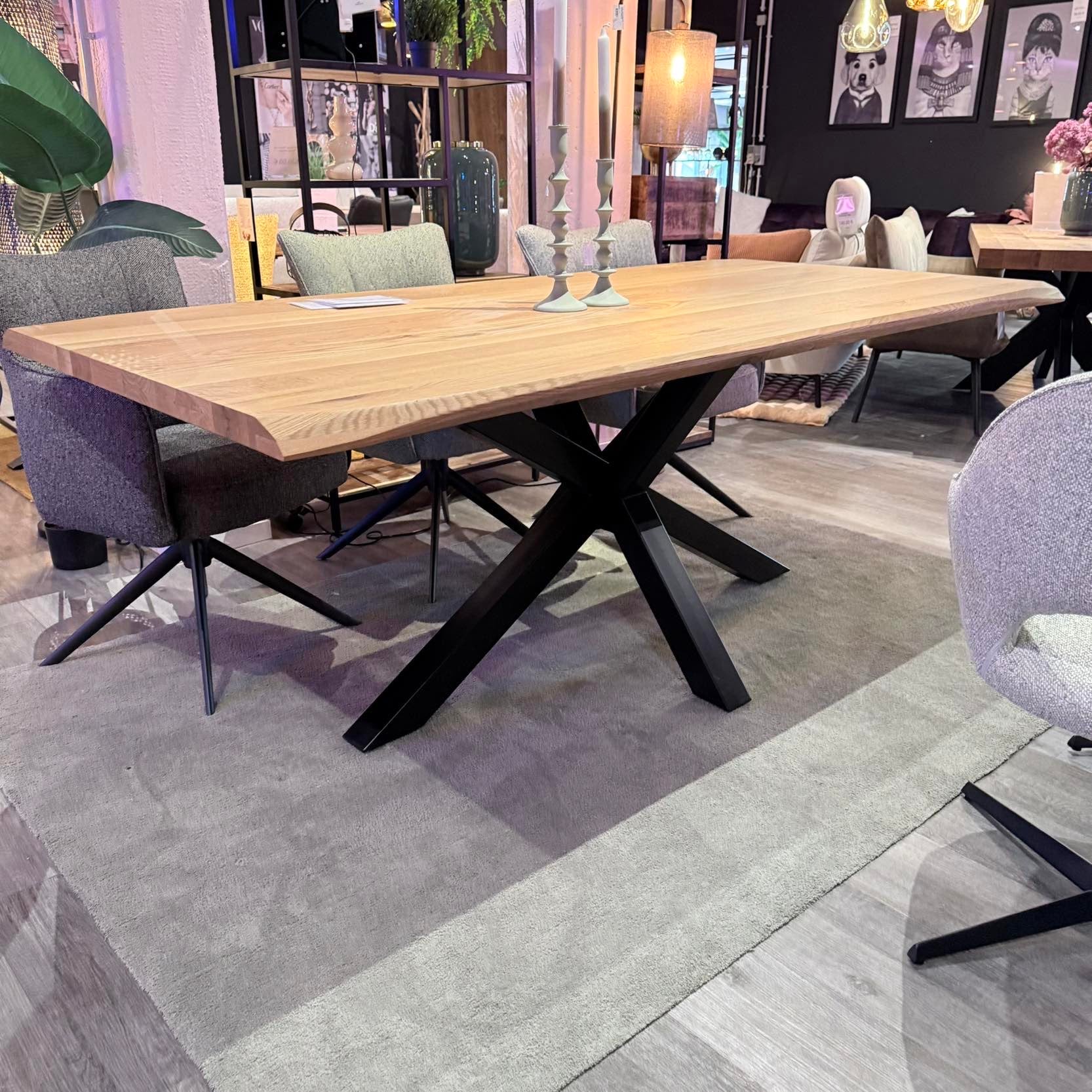 Massiver Eichen-Esstisch – Spider-Metallgestell – 200 bis 300 cm
