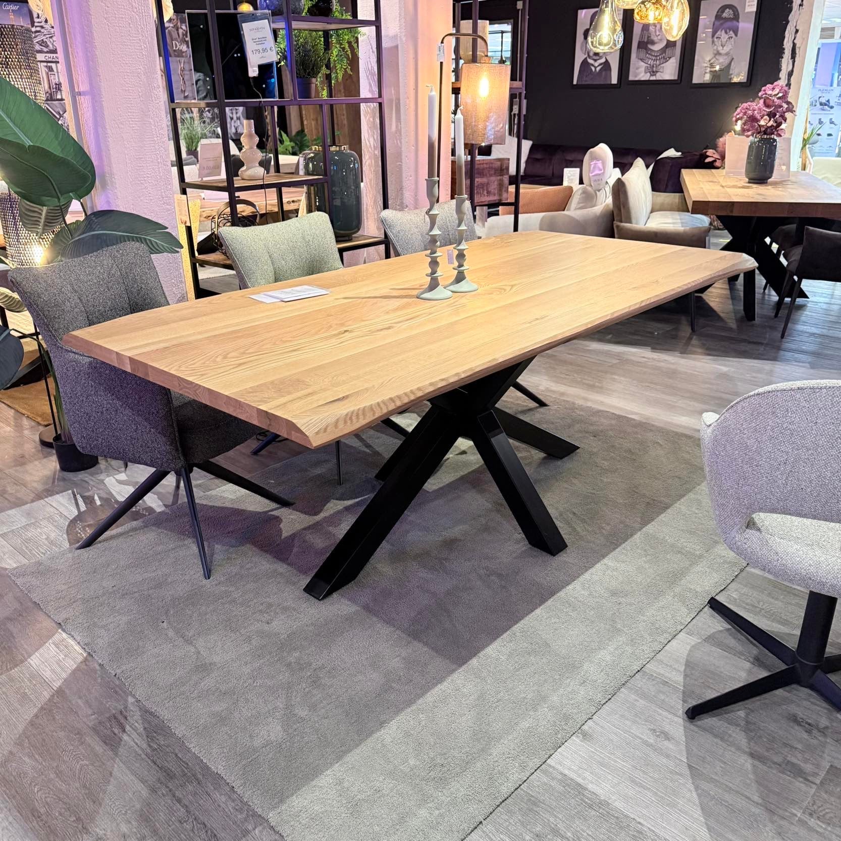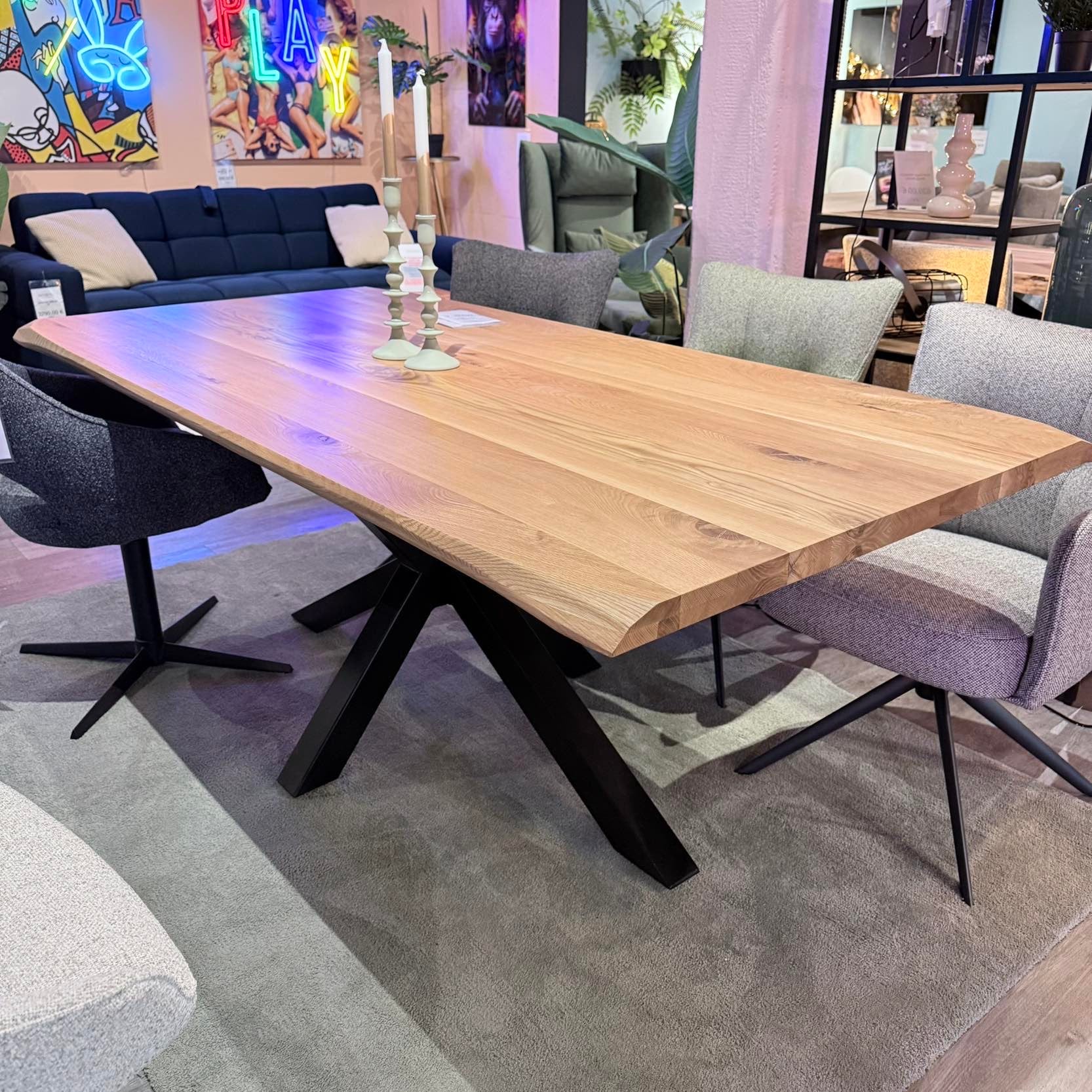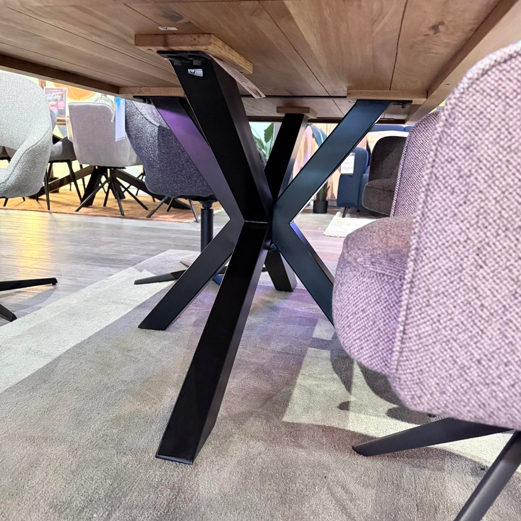 Massiver Eichen-Esstisch – Spider-Metallgestell – 200 bis 300 cm