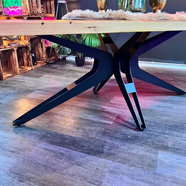 Natürliche & einzigartige Holzmaserung, verschiedene Gestelle in mattschwarz, jedes Exemplar ist ein Unikat