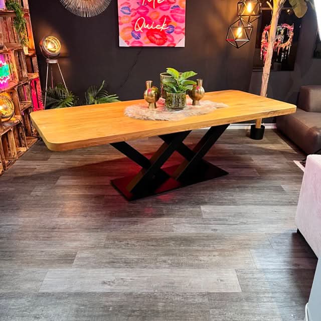 Unser trendiger Esstisch überzeugt durch eine perfekt gelungene Kombination aus Natürlichkeit und stylischer Moderne. Besonderes Highlight des Esszimmertisches sind die Tischkanten, die den natürlichen Formen eines Baumes entsprechen und direkt aus dem Baumstamm geschnitten wurden.
