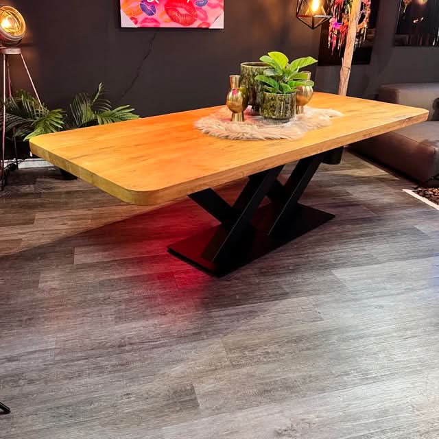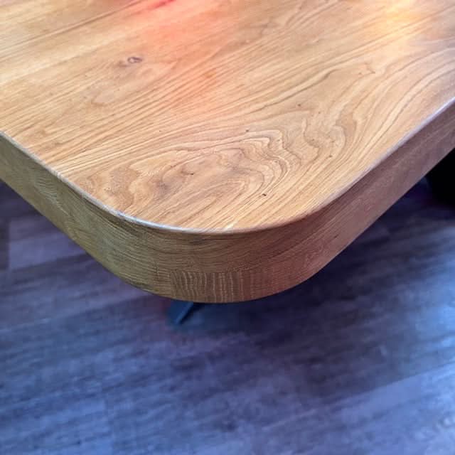- Hochwertiger und trendiger Esstisch mit abgerundeten Ecken, einer 6 cm dicken Holzplatte und gerader Kante. 60 mm (30+30 mm aufgedoppelt)