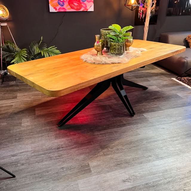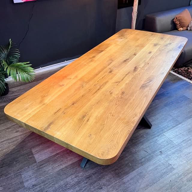 - Hochwertiger und trendiger Esstisch mit abgerundeten Ecken, einer 6 cm dicken Holzplatte und gerader Kante. 60 mm (30+30 mm aufgedoppelt)