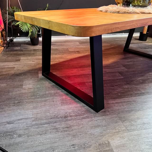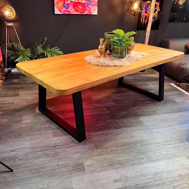 - Hochwertiger und trendiger Esstisch mit abgerundeten Ecken, einer 6 cm dicken Holzplatte und gerader Kante. 60 mm (30+30 mm aufgedoppelt)