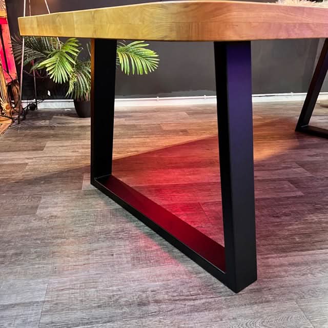 Natürliche & einzigartige Holzmaserung, verschiedene Gestelle in mattschwarz, jedes Exemplar ist ein Unikat