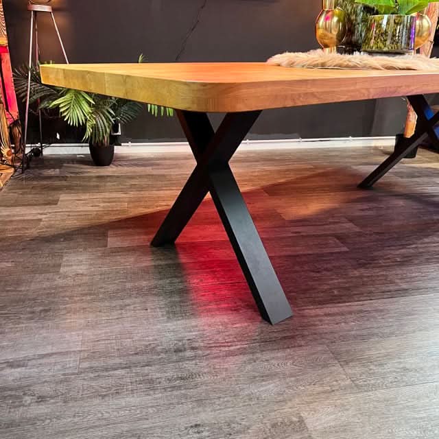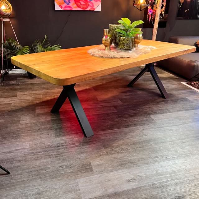 - Hochwertiger und trendiger Esstisch mit abgerundeten Ecken, einer 6 cm dicken Holzplatte und gerader Kante. 60 mm (30+30 mm aufgedoppelt)