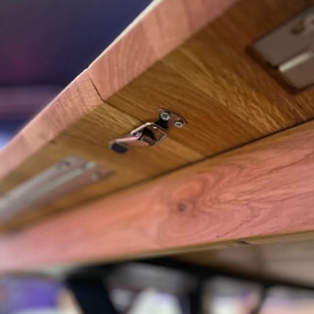 - Die Tischplatte ist aus massivem Eichenholz gefertigt und mit einem Lack bzw. Öl versiegelt.