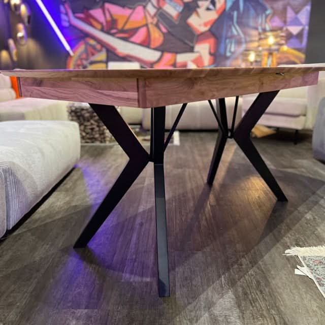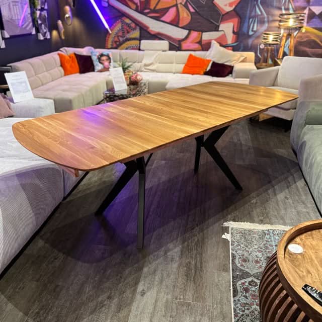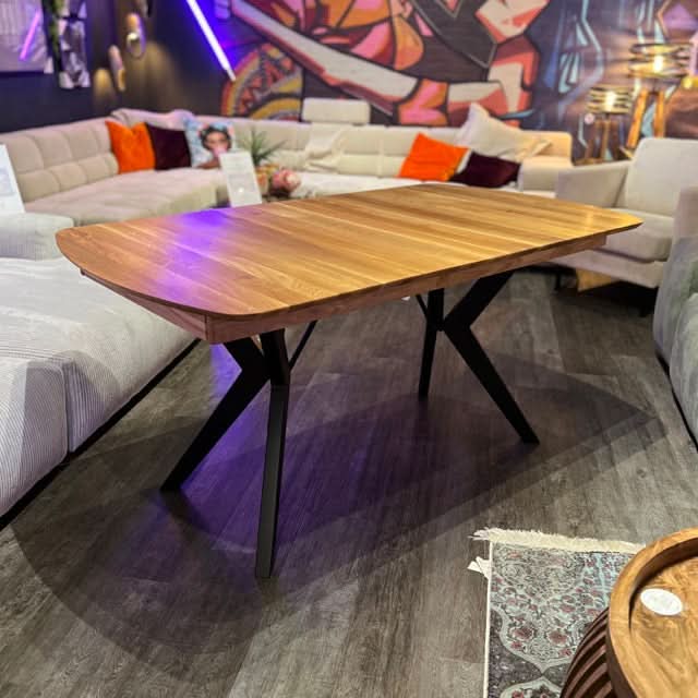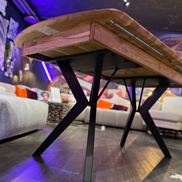 Unser trendiger Esstisch überzeugt durch eine perfekt gelungene Kombination aus Natürlichkeit und stylischer Moderne.