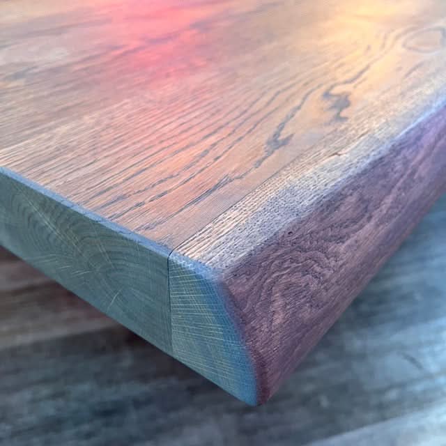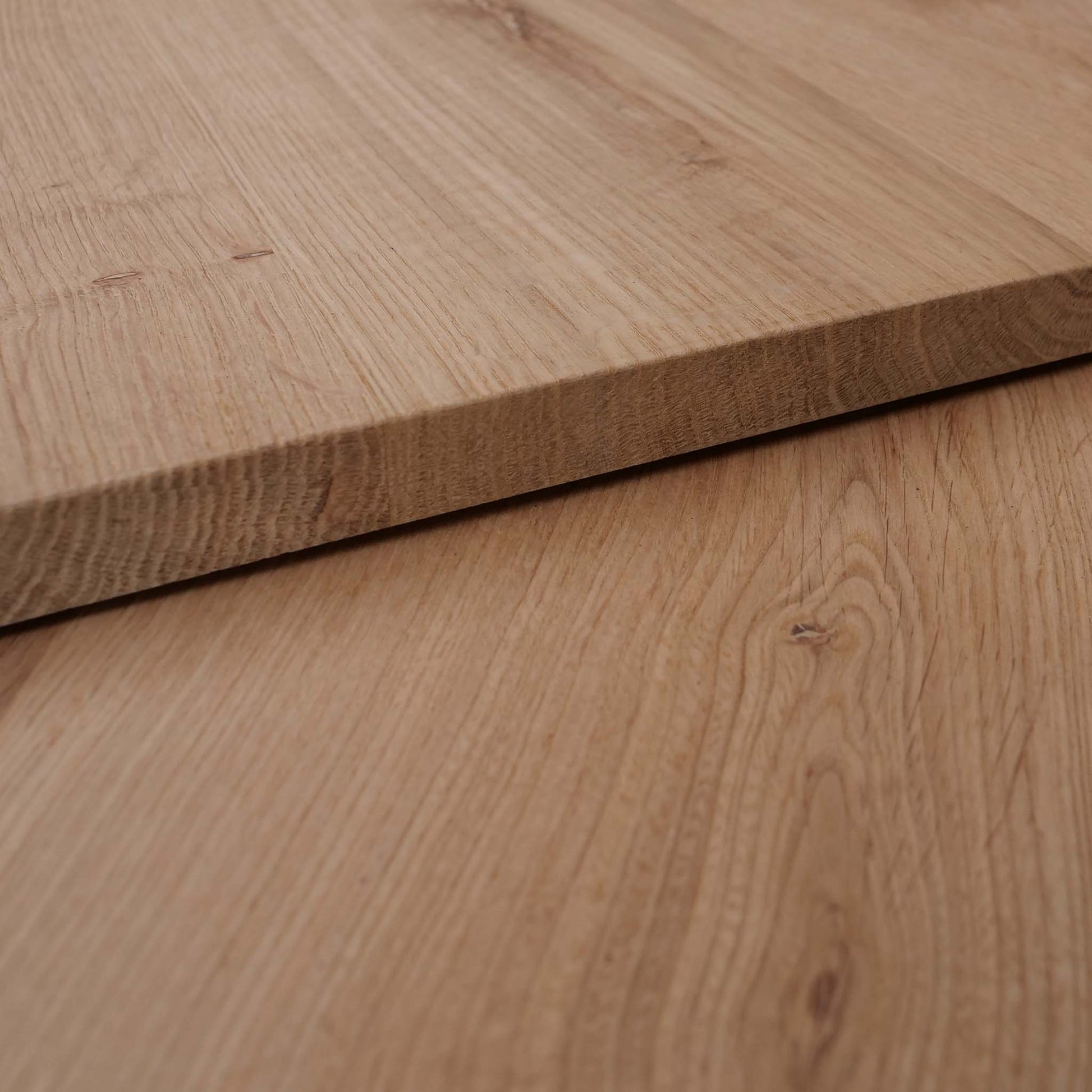 - Die Tischplatte ist aus massivem Eichenholz gefertigt und mit einem Lack bzw. Öl versiegelt.