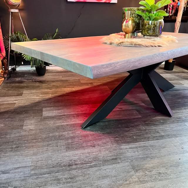 - Hochwertiger und trendiger Esstisch mit 6 cm dicker Holzplatte mit echter Baumkante. 60 mm (30+30 mm aufgedoppelt)