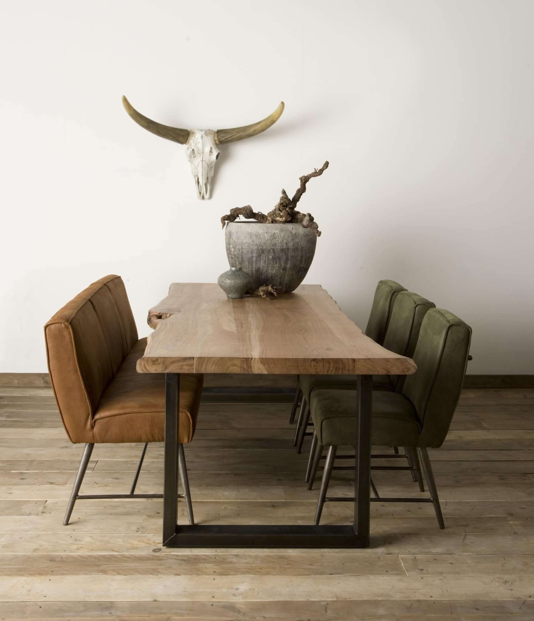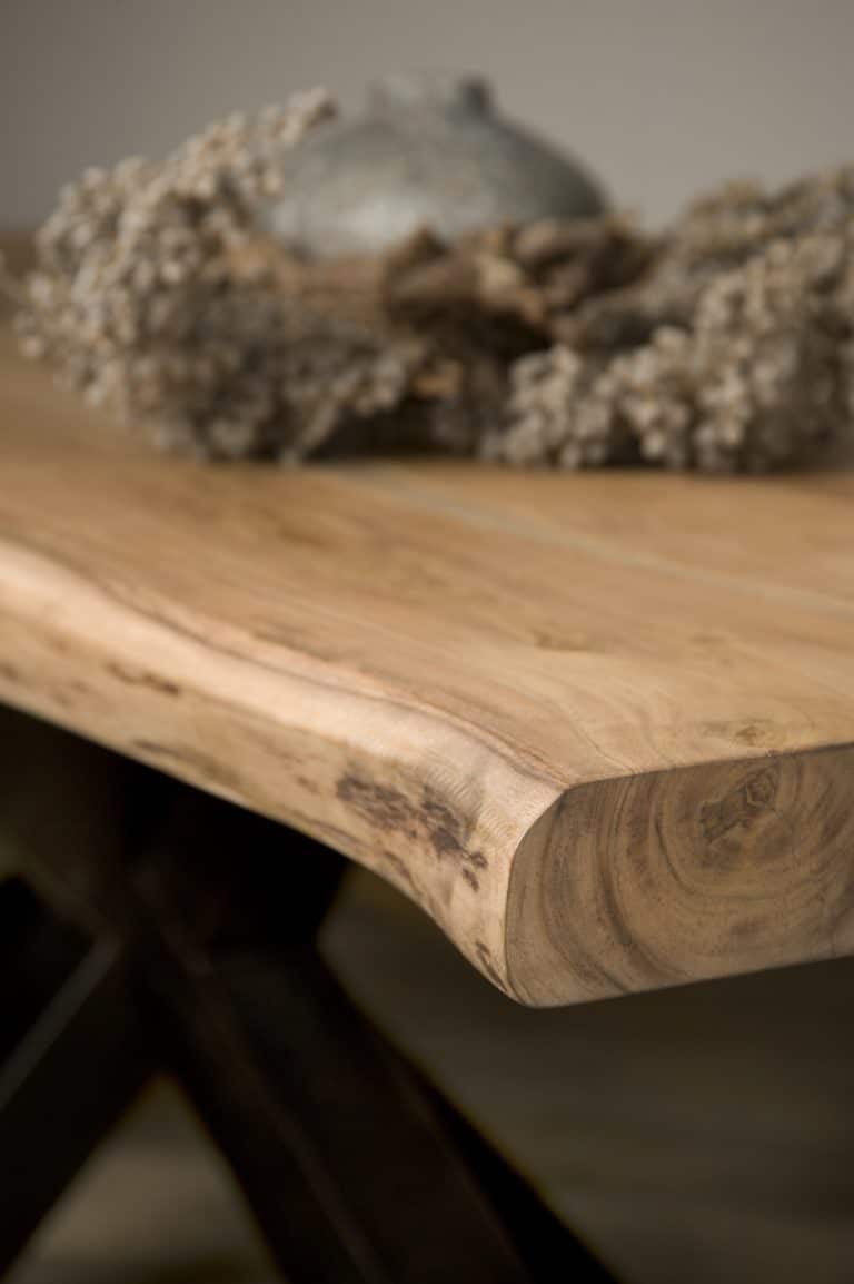 Einzigartiger Baumstamm-Tisch aus Akazienholz. In Kombination mit einem modernen Matall U-Fuß.
