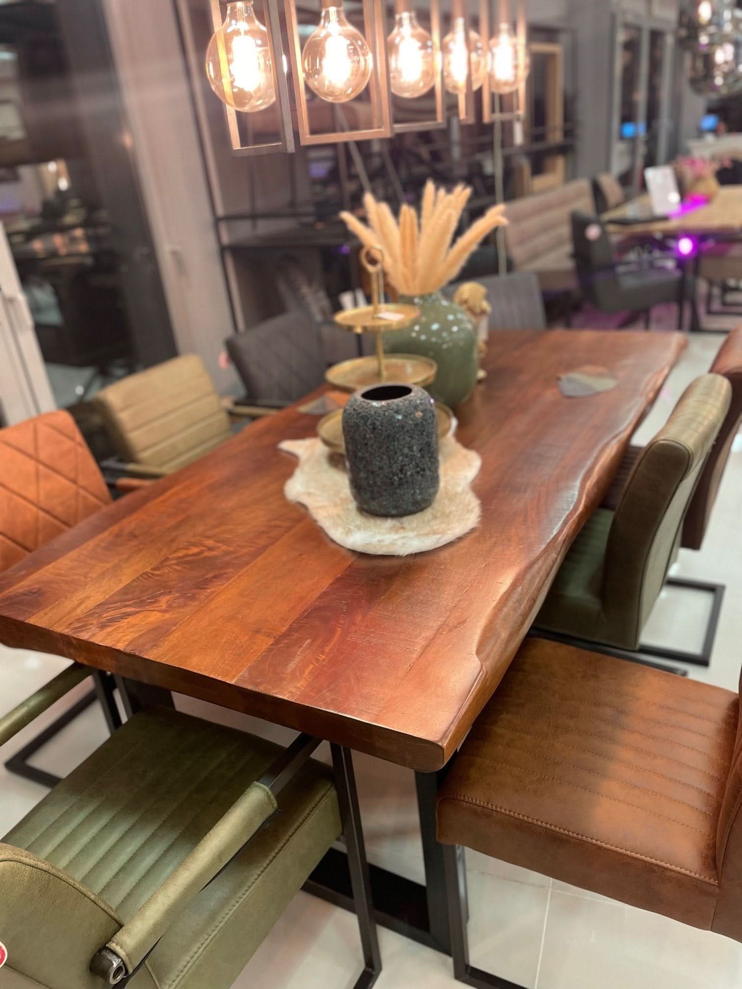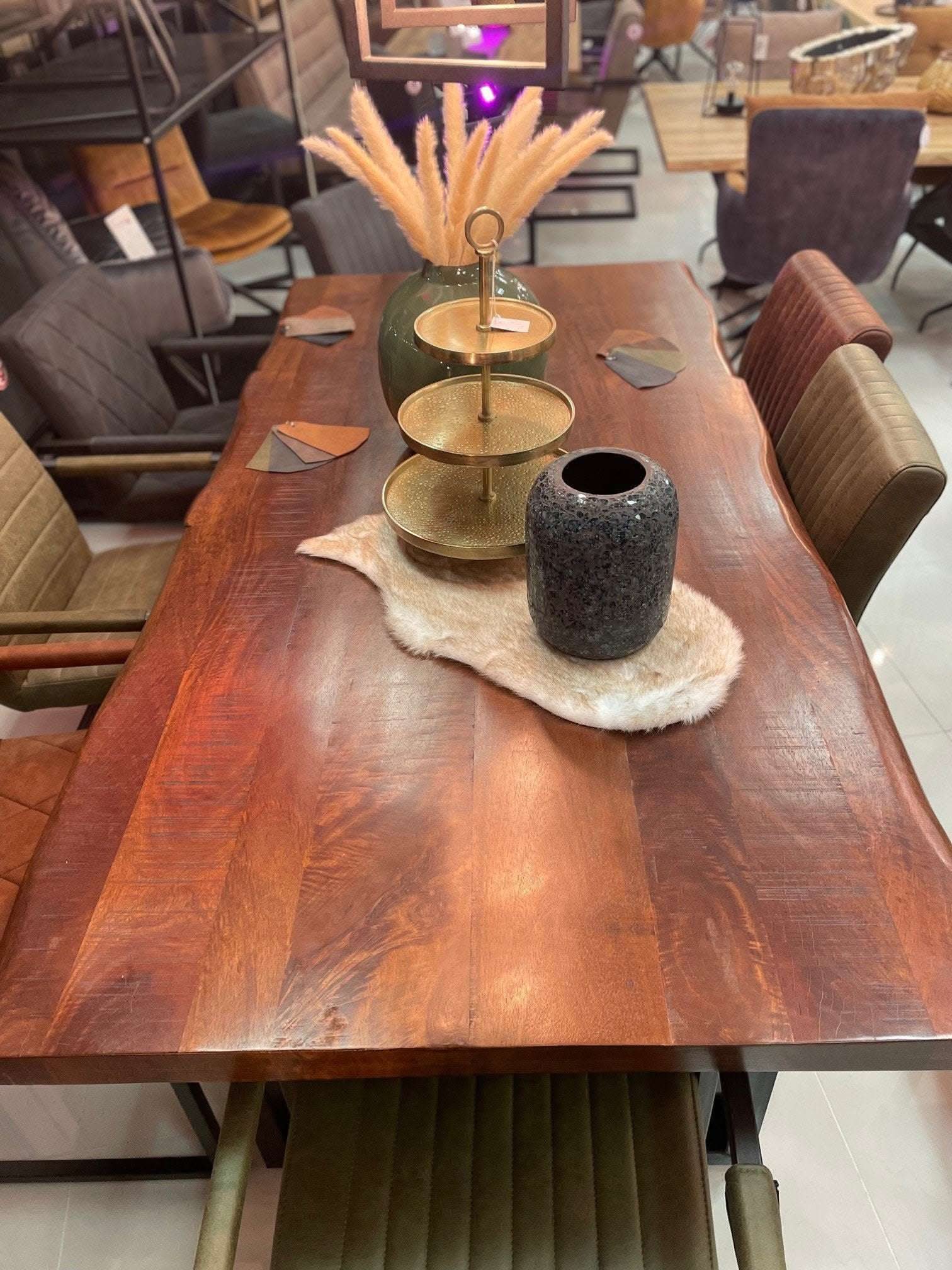 Der Esstisch Marie ist aus Mangoholz von allerbester Qualität gefertigt. Der robuste Tisch hat schöne natürliche Merkmale und Formen im Holz. Diese Eigenschaften verleihen diesem Baumstammtisch seinen Charme. Durch die Kombination mit einem schwarzen Metallbein passt dieser Tisch auch perfekt in ein industrielles Interieur. Der Tisch hat eine massive Platte von 3 cm, die an den Kanten auf 6 cm verdickt ist.