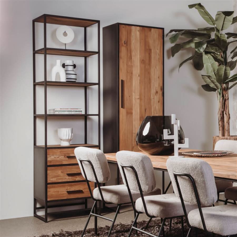 Hol die Natur ins Haus mit dem Felino Hochschrank! Ob als Bücherregal oder zum Verstauen, dieser Hochschrank aus recyceltem Teak und Metallrahmen wird für Ordnung sorgen. Mit drei Schubladen bietet er genügend Stauraum für deine Schätze. Nachhaltig und stylisch - ein echter Hingucker!