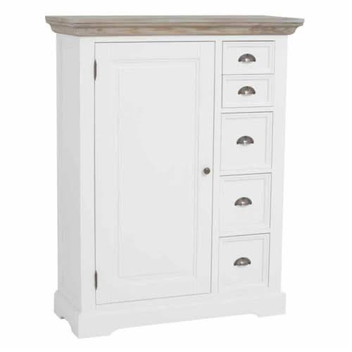 Dieser Fleur Hochschrank ist perfekt für die Aufbewahrung in Ihrem Wohnzimmer. Mit einer Tür und Schubladen bietet er ausreichend Platz für Ihre Gegenstände. In zeitlosem Weiß und mit einer kiefer-grauen Farbe ist er sowohl funktional als auch stilvoll. Ein Muss für jeden Haushalt!