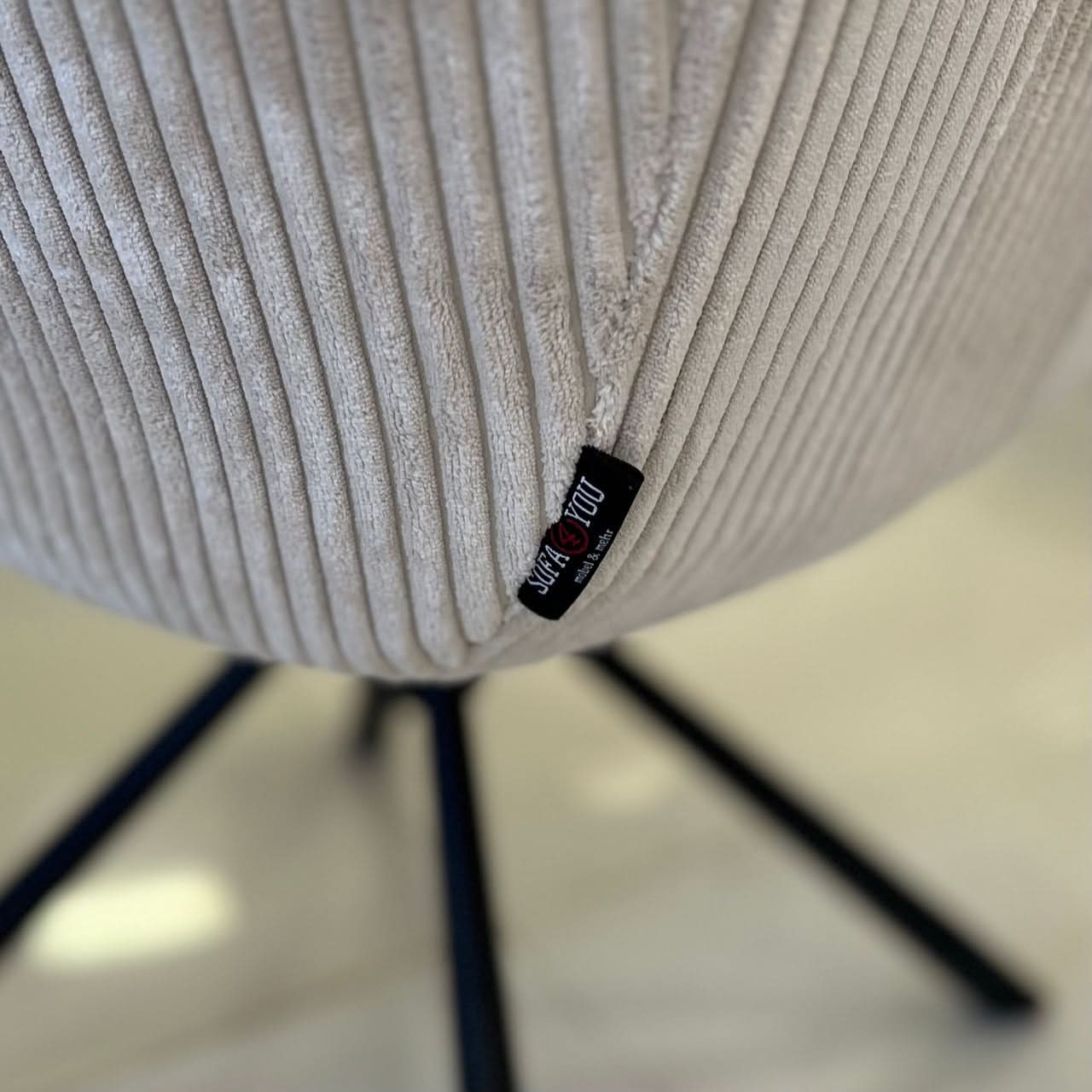 • Schwarz pulverbeschichteter Fuß: Der elegante Fuß des Stuhls ist in hochwertigem, schwarz pulverbeschichtetem Metall gehalten und sorgt für einen modernen, langlebigen Look.