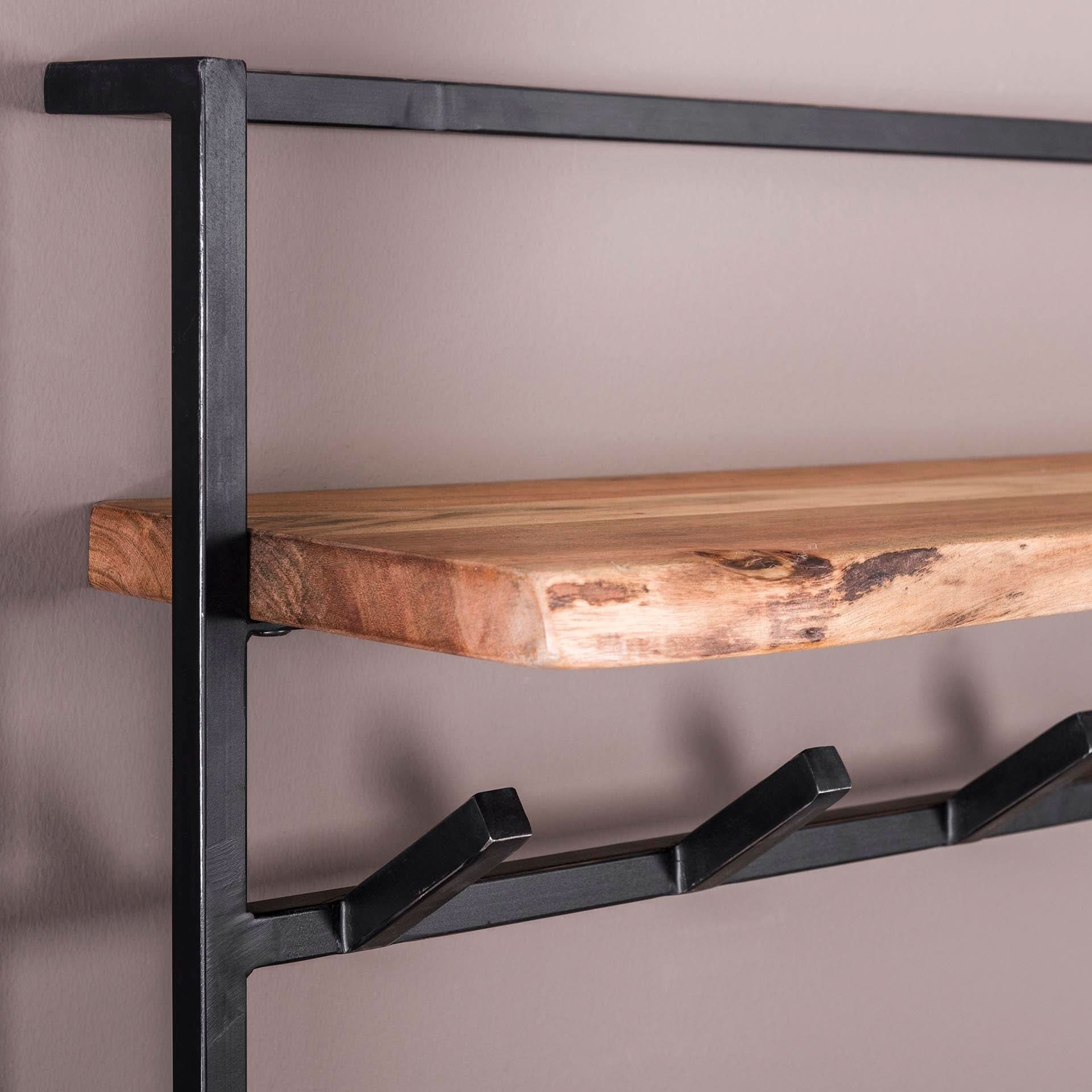 Dieser Garderobenständer 'air solid' hat eine Hutablage aus massivem Akazienholz. Sorgfältig ausgewähltes Holz mit feiner Maserung und verschiedenen Ästen, das auf traditionelle Weise verarbeitet wird. Dies verleiht der Wand ein natürliches und einzigartiges Aussehen. An der Hutablage sind 6 schwarze, geschliffene Metallhaken angebracht, und die gleichen Haken befinden sich auch an der Unterseite. Die Garderobe hat zwei Befestigungsösen an der Rückseite, so dass die Garderobe leicht an der Wand montiert werden kann. Dieser Garderobenständer gehört zu der Serie 'air solid'.