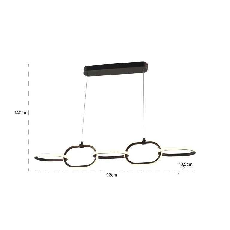 Die Lampe misst 92 cm in der Breite, 13,5 cm in der Tiefe und 13,5 cm in der Höhe. Das dezente, flache Design sorgt für ein aufgeräumtes Erscheinungsbild, während das verstellbare Kabel mit bis zu 120 cm Länge eine flexible Montage in unterschiedlichen Raumhöhen ermöglicht.