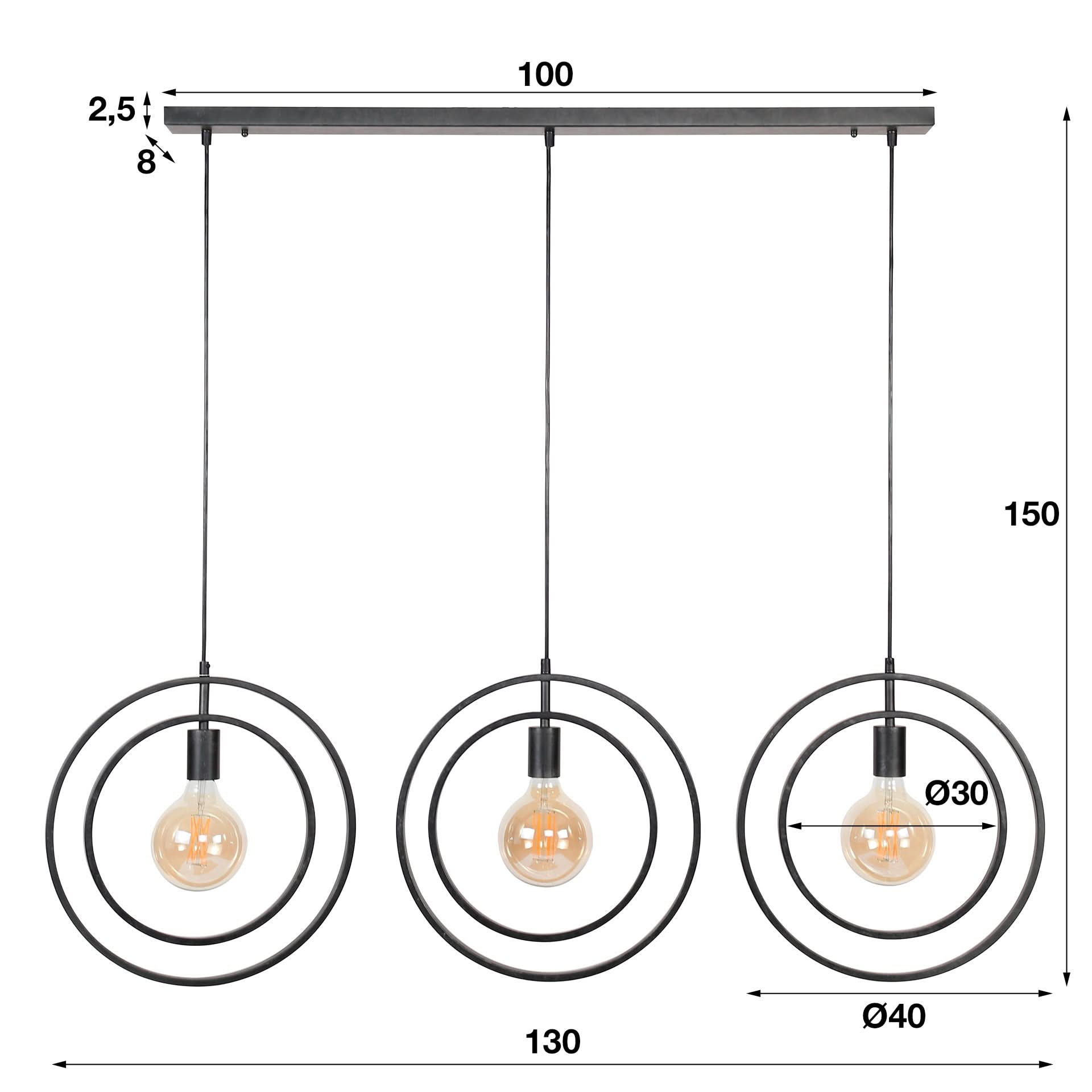 Diese Hängelampe 'Turn around' ist aus Metall mit Charcoal-Finish gefertigt. Die äußeren Kreise sind an den Stromkabeln befestigt, und die inneren Kreise können sich vollständig drehen, so dass sie in der gewünschten Weise platziert werden können. Dank der durchbrochenen Leuchte kommen die Lichtquellen zur Geltung, und der Raum wird wunderschön ausgeleuchtet. Diese Hängelampe ist in der Höhe bis zu 150 cm verstellbar und eignet sich ideal für über einem Esstisch! Diese Hängelampe ist Teil einer Serie, die aus zwei Hängelampen, einer Stehleuchte und einer Tischleuchte besteht. Es wird empfohlen, eine LED-Lichtquelle zu verwenden (8467).
