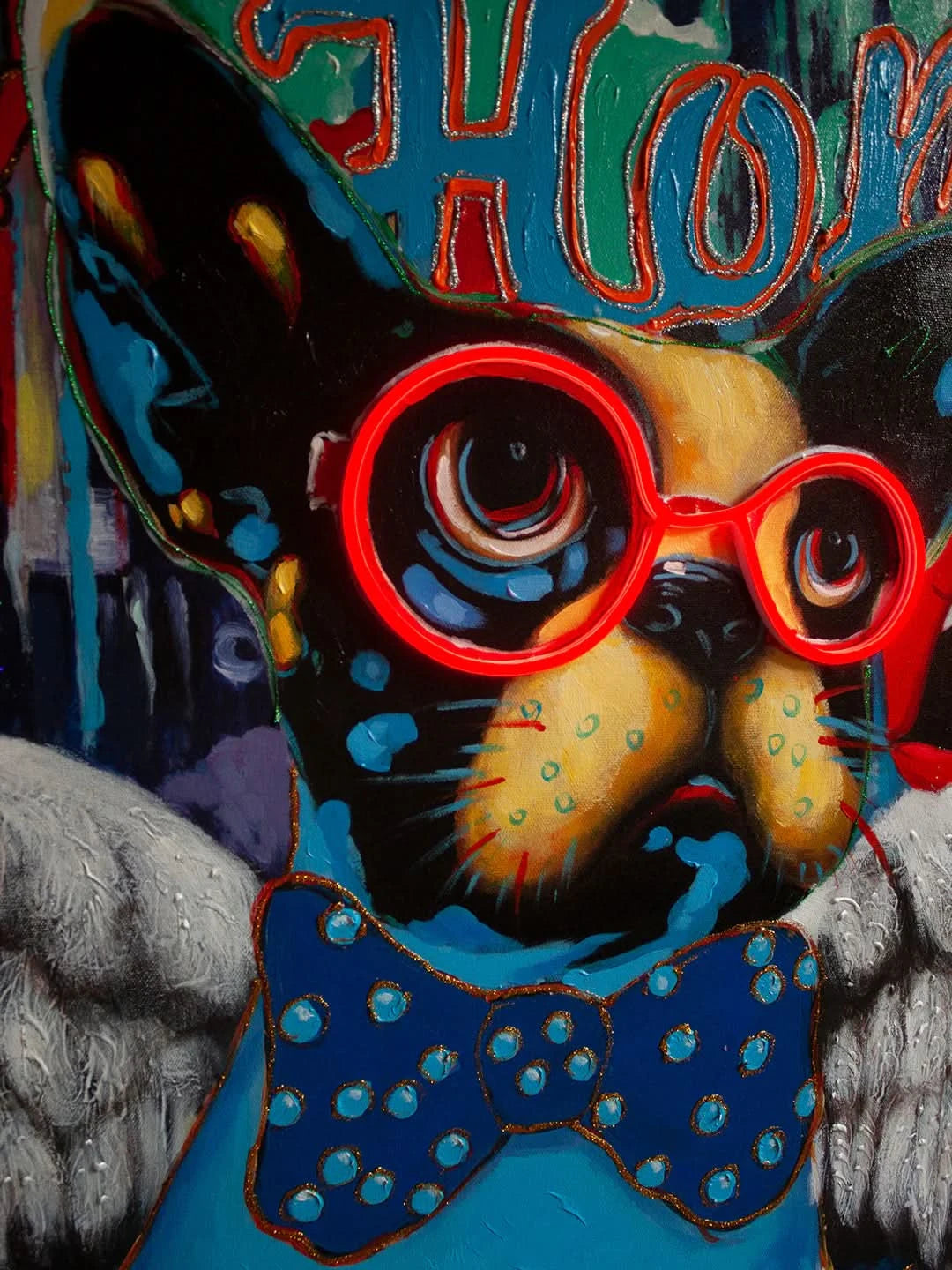 Das Wandkunstwerk „Hund mit Flügeln“ auf Leinwand ist ein wunderschönes, 100 % handgemaltes Design voller Farbe und Flair. Rotes LED-Neon wird auf die bemalte Leinwand gelegt, um den perfekten Neon-Pop zu geben und den WOW-Faktor in Ihre Innenräume zu bringen.