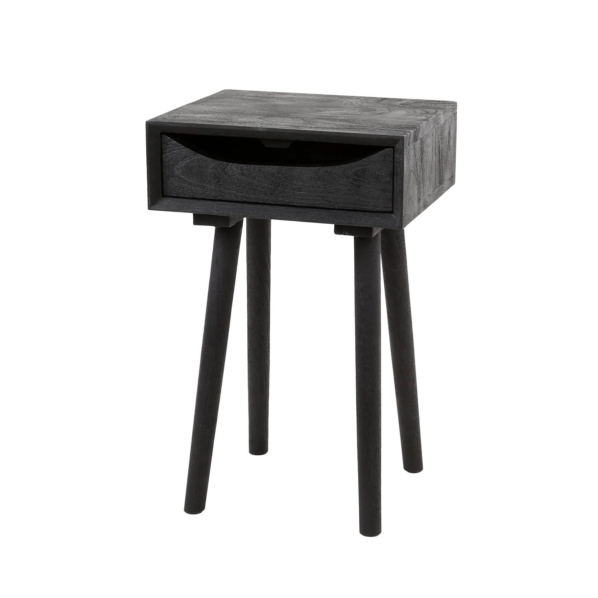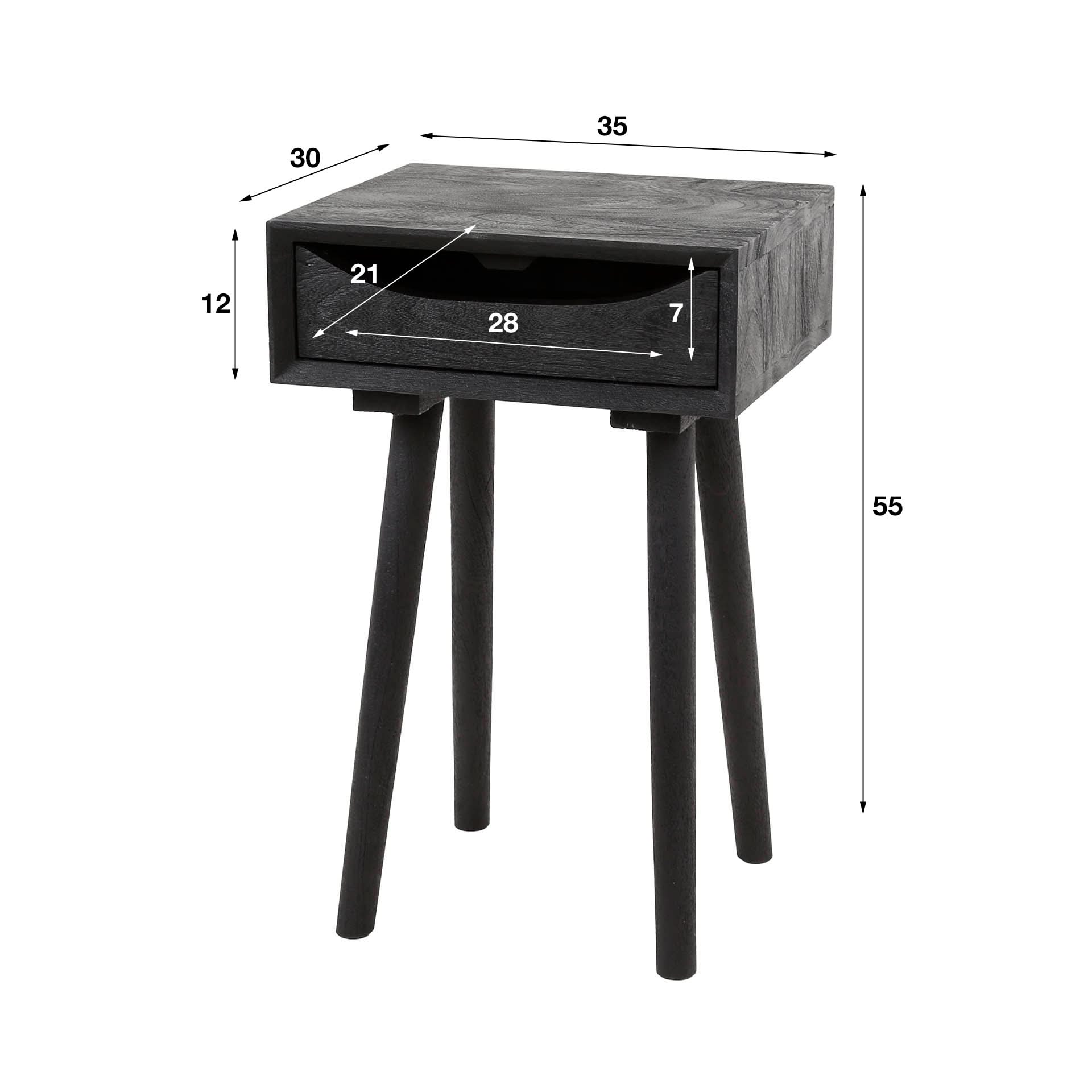 Dieser Nachttisch "sleek wood inlay" ist aus massivem Akazienholz gefertigt und hat eine schöne schwarze Oberfläche und Holzrahmen. Der Nachttisch hat eine Schublade. Die Schublade verfügt über eine Kerbe und fügt eine einzigartige Note zu diesem Nachttisch.