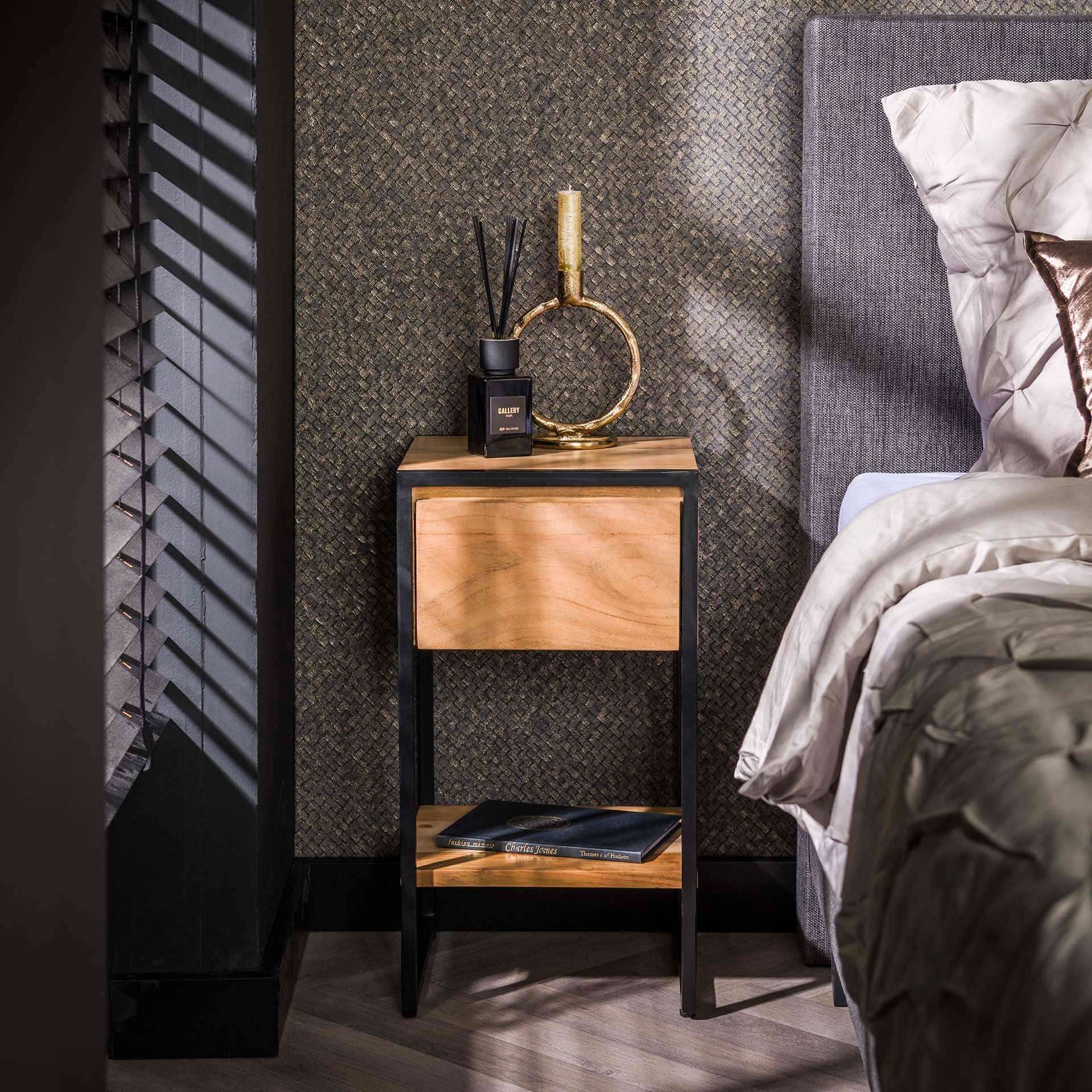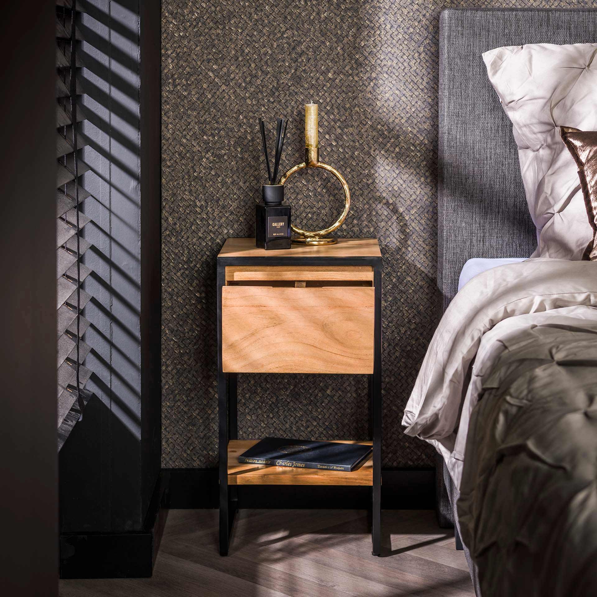 Dieser Nachttisch 'XS straight wood' ist aus massivem Akazienholz mit schwarzem Metallgestell gefertigt. Der Nachttisch hat eine Schublade und ein Regal. Ein moderner und minimalistischer Nachttisch, der in jedes Schlafzimmer passt!