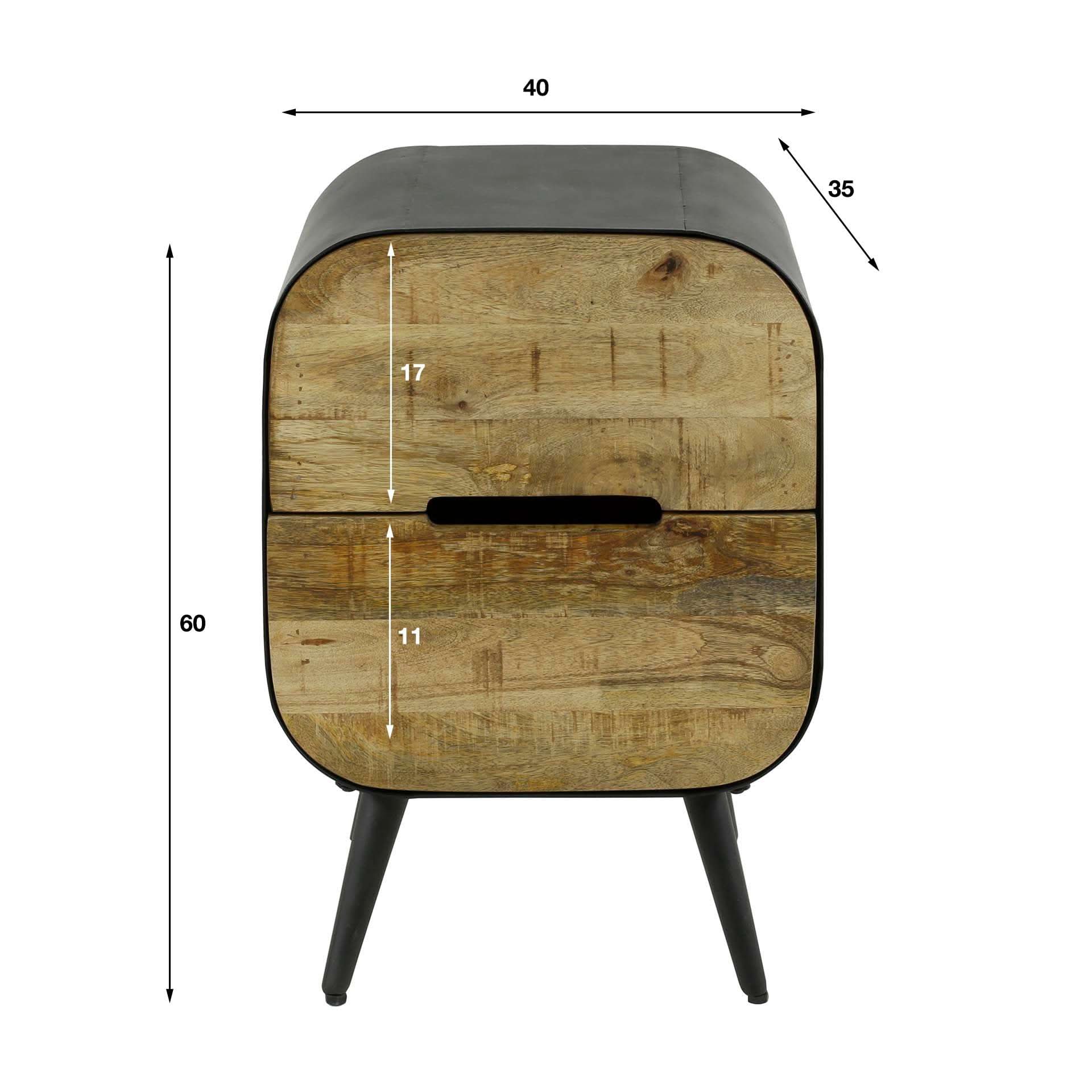 Dieser Nachttisch hat 2 Schubladen  (carve)