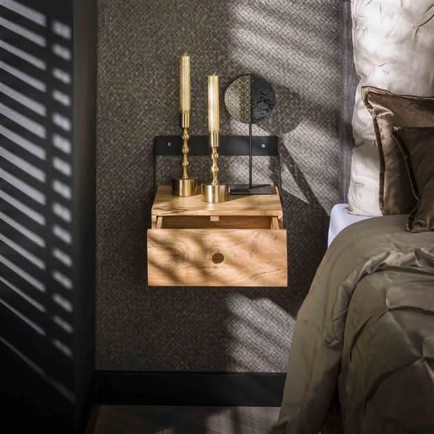 Dieser Nachttisch ist aus massivem Akazienholz gefertigt. Der Nachttisch hat eine Schublade. Der Nachttisch wird mit 2 Schrauben an der Wand befestigt. Ein modernes und minimalistisches Nachttischchen, geeignet für jedes Schlafzimmer! Dieser Nachttisch besteht aus einem Satz von 2.