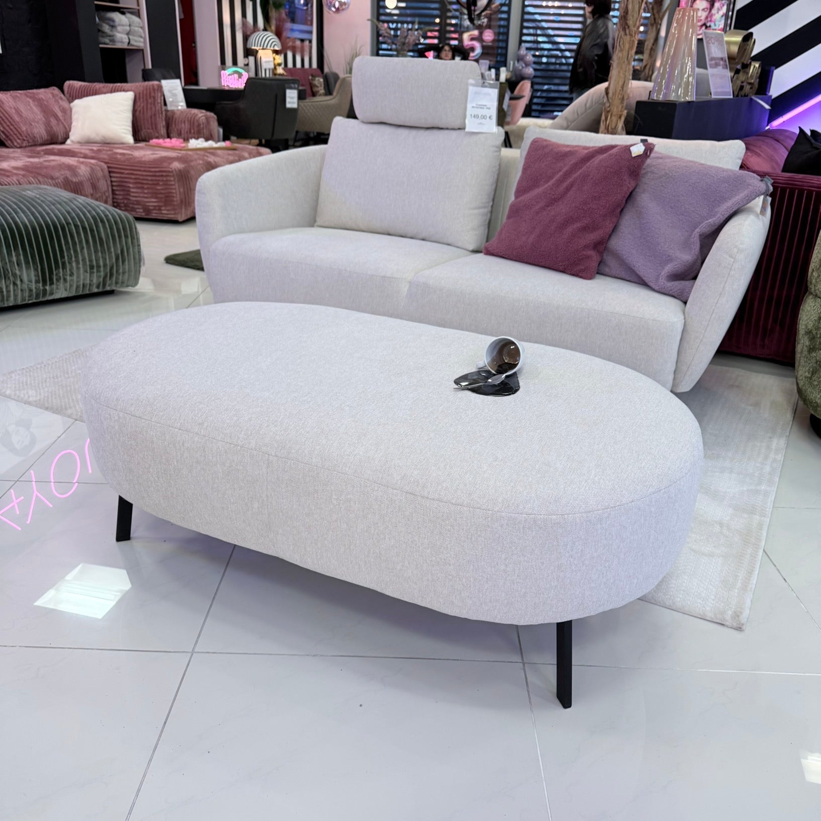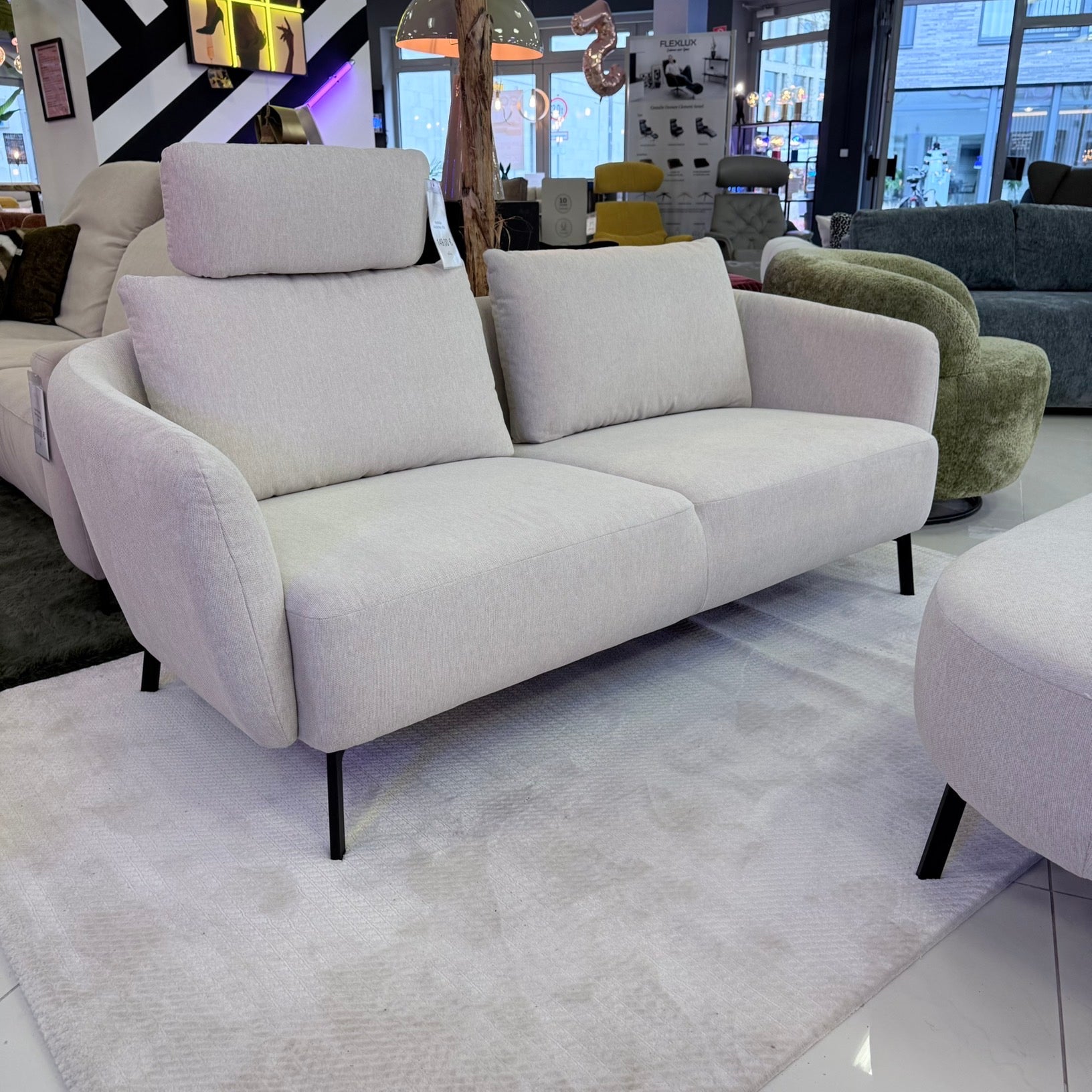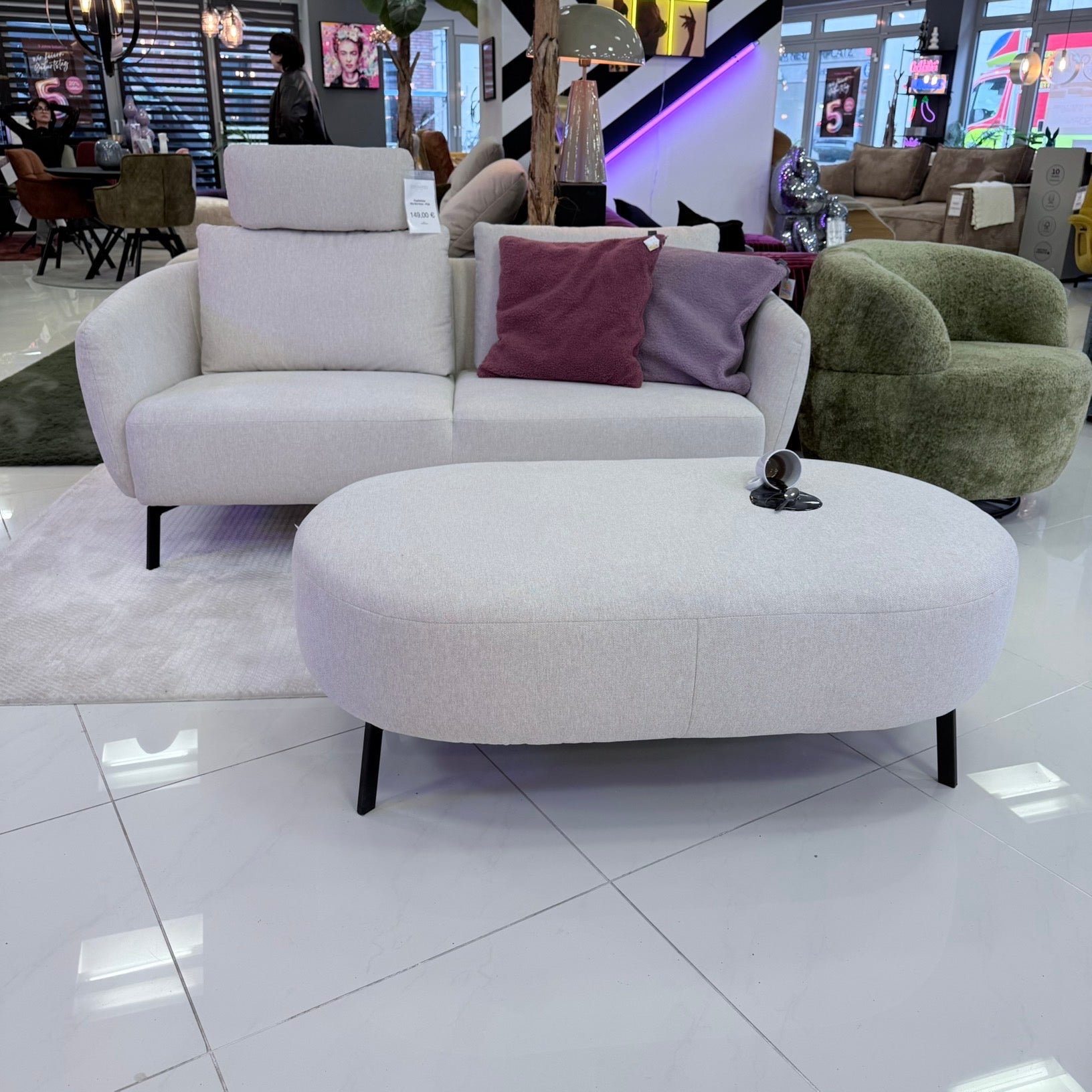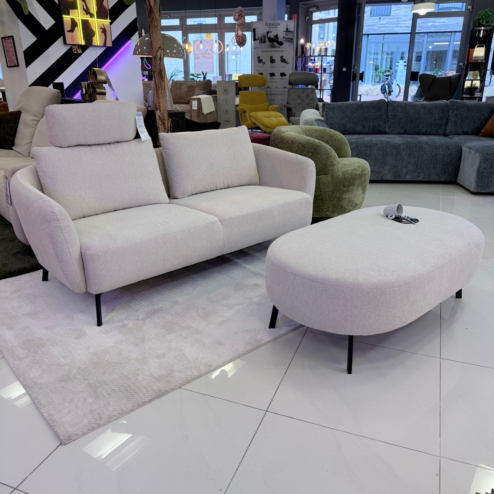 Jetzt stark reduziert im Outlet: Das Sofa NELE kombiniert modernes Design mit gemütlichem Komfort. Der 2,5-Sitzer mit 190 cm Breite bietet viel Platz zum Entspannen und wird durch den ovalen Hocker und der Kopfstütze perfekt ergänzt – ideal zum Füße hochlegen oder als zusätzliche Sitzgelegenheit.