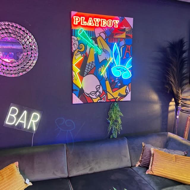 Retro-Vintage-Vibes mit diesem klassischen Playboy-Cover von 1954. Zum Leben erweckt durch mehrfarbiges LED-Neon, das für einen Hauch von Jazz sorgt!