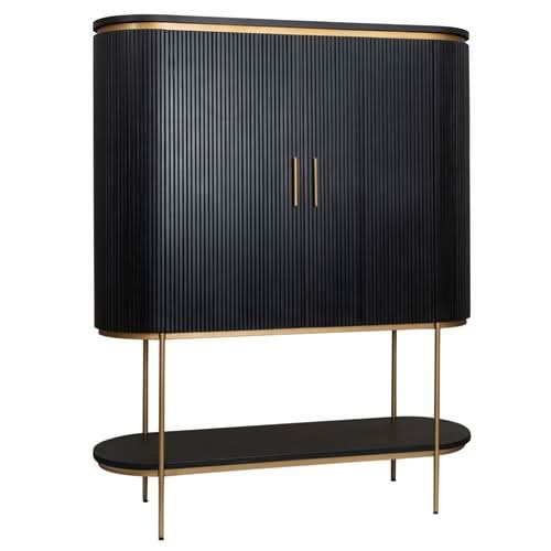 Mach Platz für den Rivello Hochschrank mit hohen Füßen in Mango-Schwarz-Olive Messing Farbe. Mit zwei Türen und einer Ablage bietet er praktischen Stauraum in einem stilvollen Design. Gewinnen Sie mit diesem hochwertigen Schrank mehr Platz in Ihrem Zuhause!