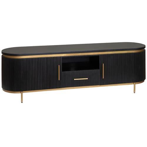 Ein TV-Möbel der Extraklasse! Mit zwei Türen, einer Schublade und einer offenen Ablage bietet es genügend Stauraum für alle deine Unterhaltungsgeräte. Die hohen Füße verleihen ihm einen modernen Look und die Kombination aus Mango, Schwarz und Olive-Messing ist einfach einzigartig. Hol dir jetzt das Rivello TV-Möbel und bringe Schwung in dein Wohnzimmer!